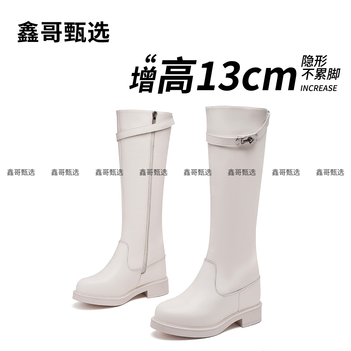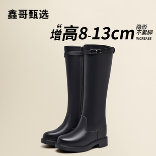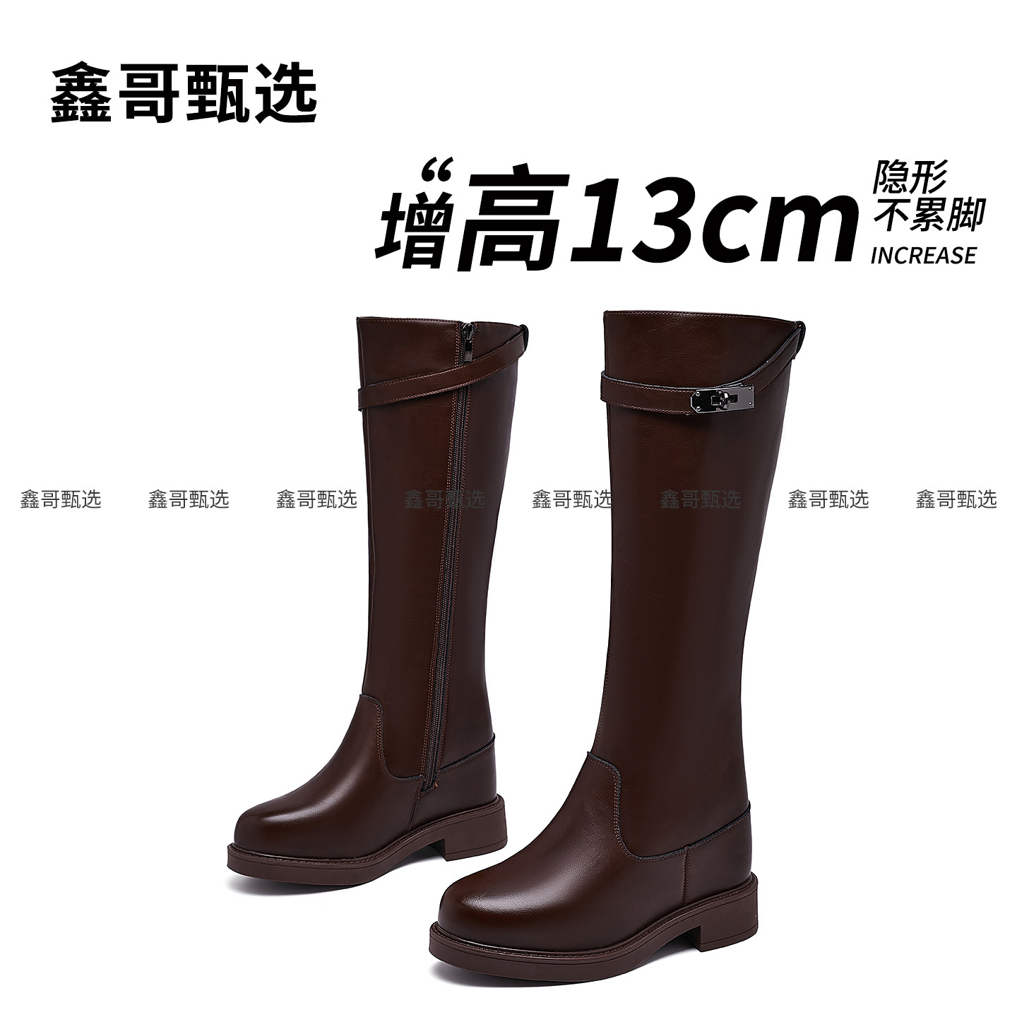 鑫哥甄选内增高8 隐形真皮高长筒靴子 13厘米骑士靴女2025年冬新款