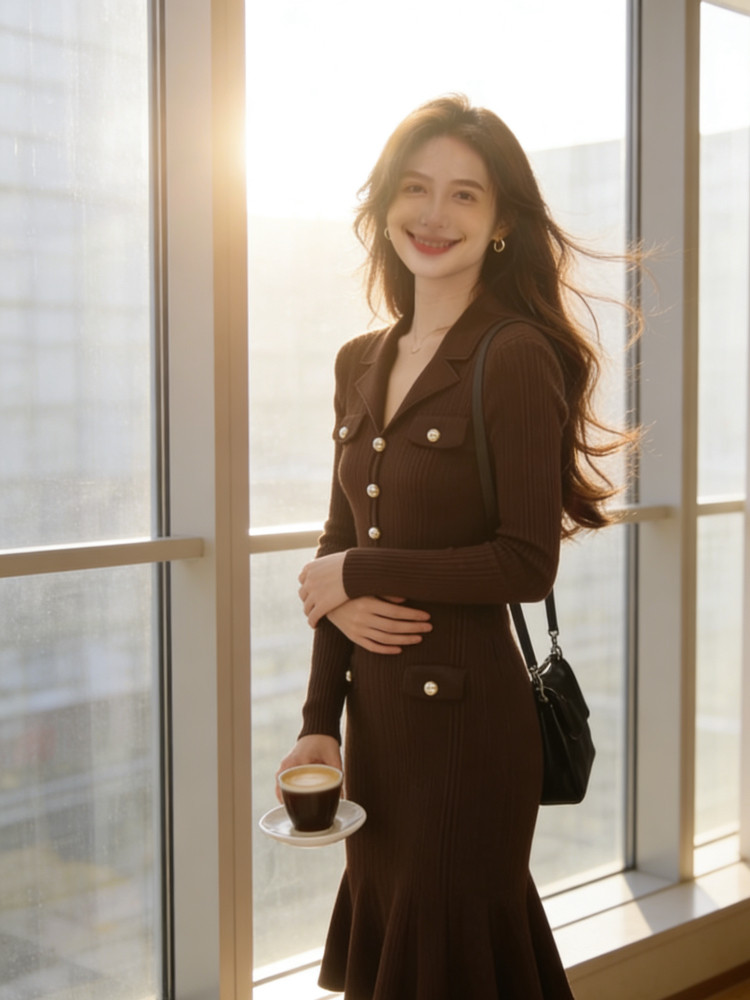 氛围感V领针织连衣裙女微胖收腰显瘦长裙 谱写优雅 肉装 小cherry