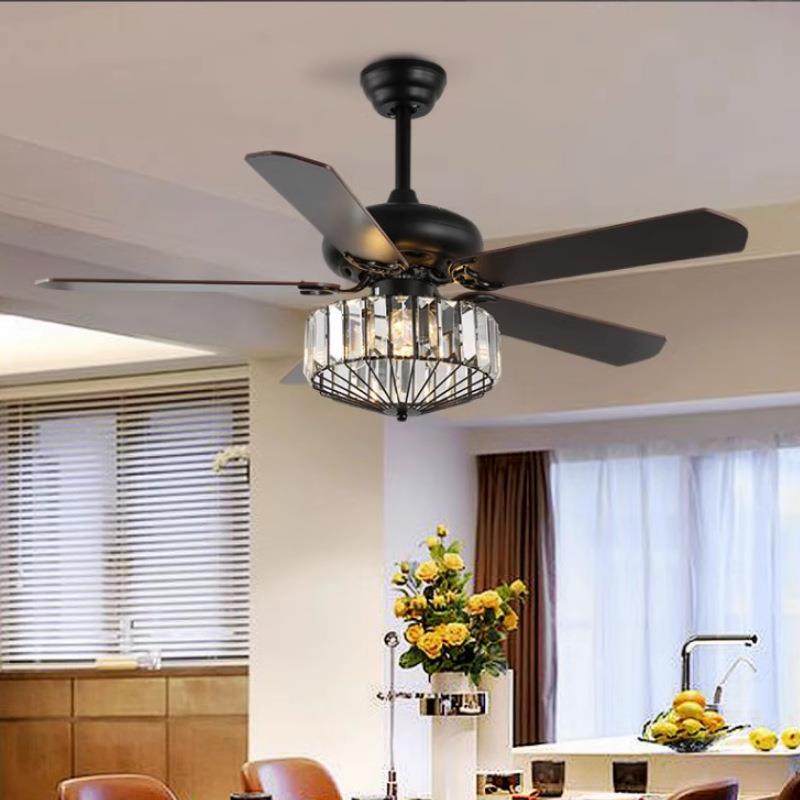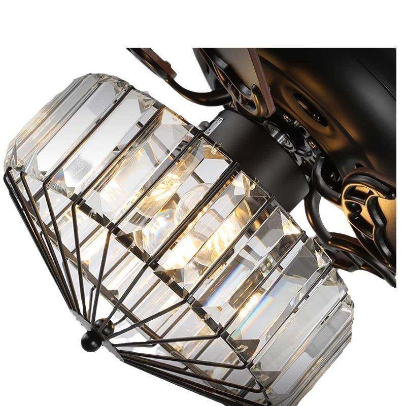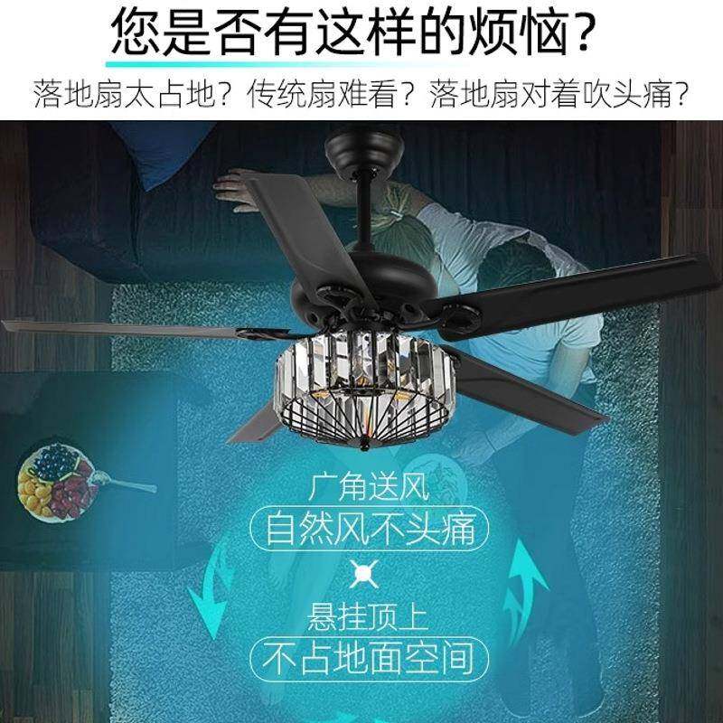 亿大美式 水晶风扇灯餐厅客厅吊扇灯仿古轻奢电风扇家用静音吊灯