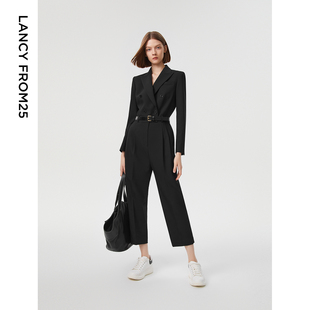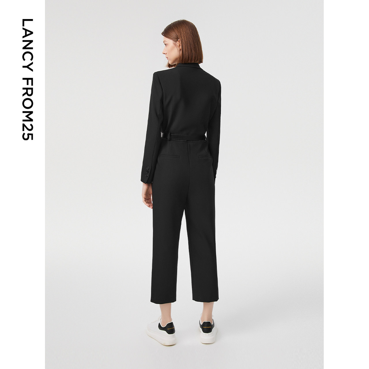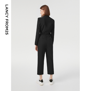 黑色直筒高腰显瘦气质时尚 休闲裤 九分裤 新款 女2023年春季 朗姿法式