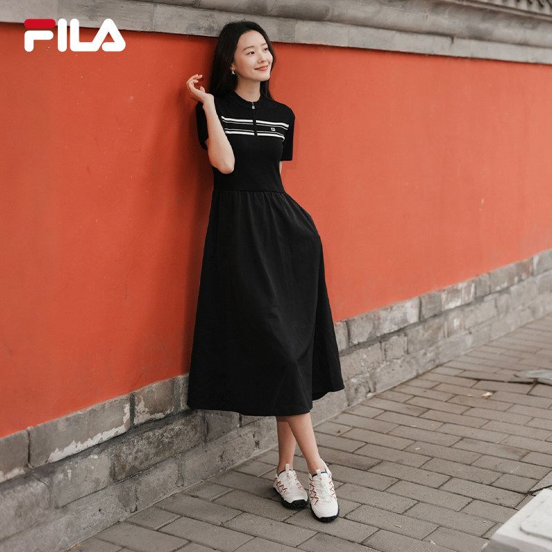 短袖 休闲简约修身 收腰连衣裙 时尚 FILA斐乐官方女子连衣裙春夏秋款