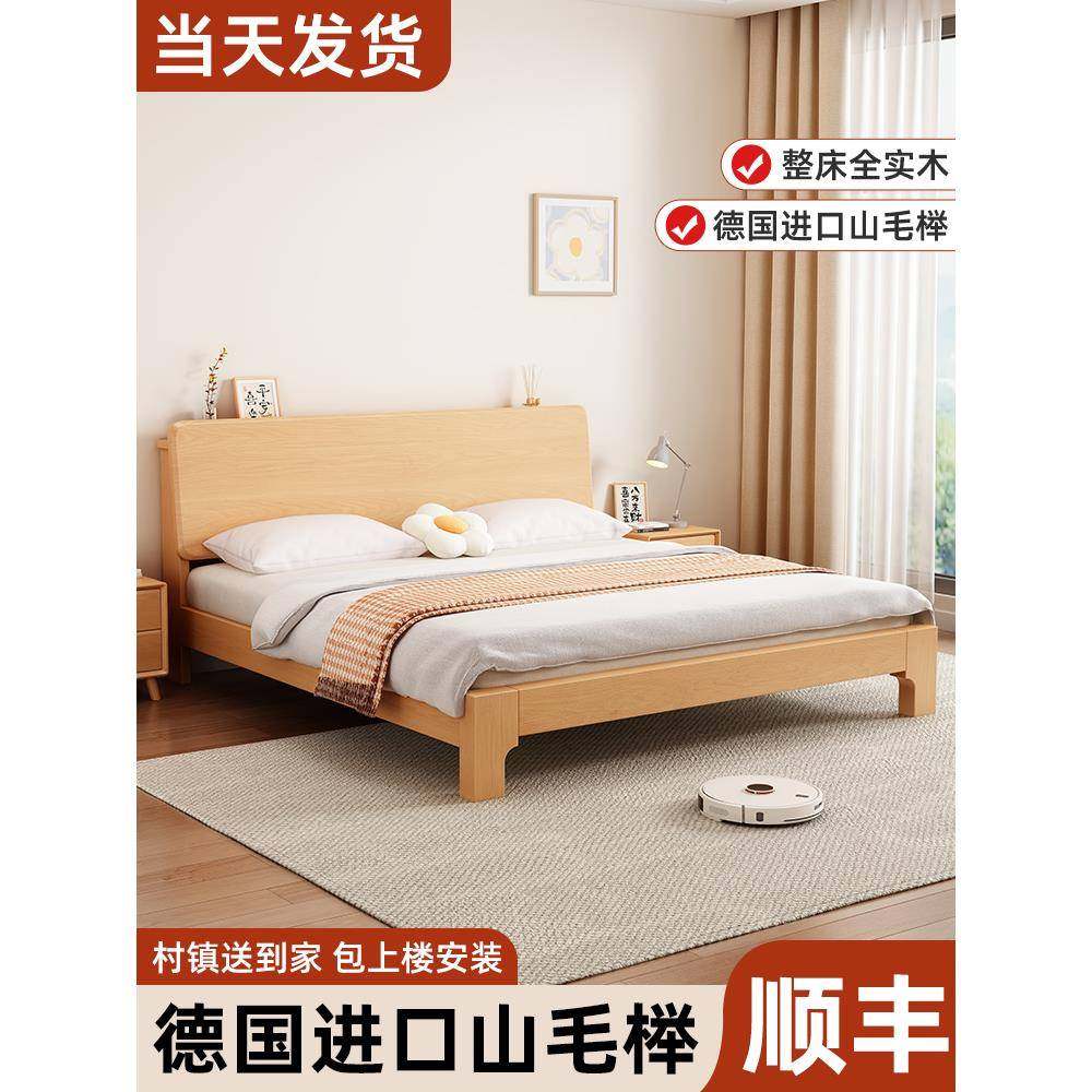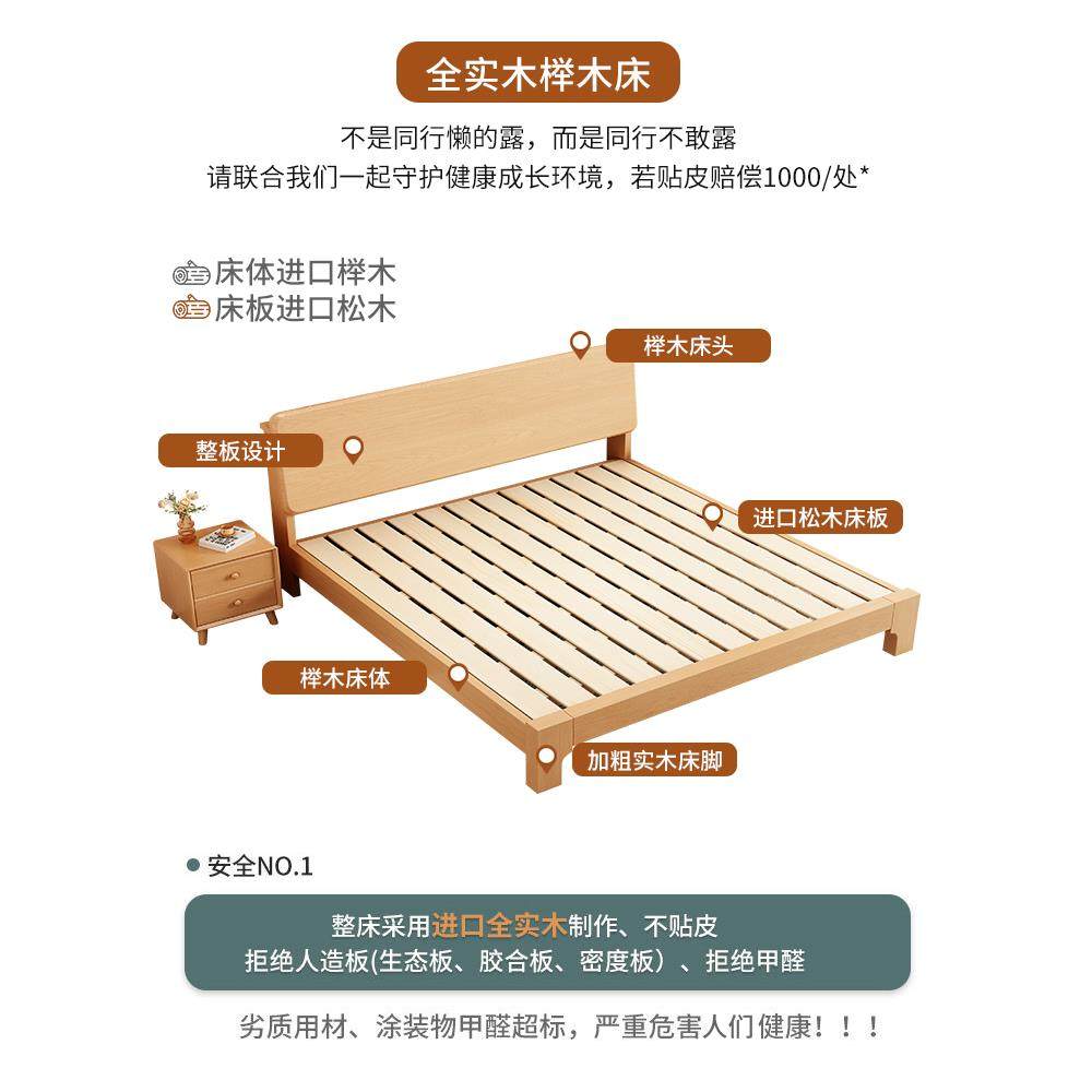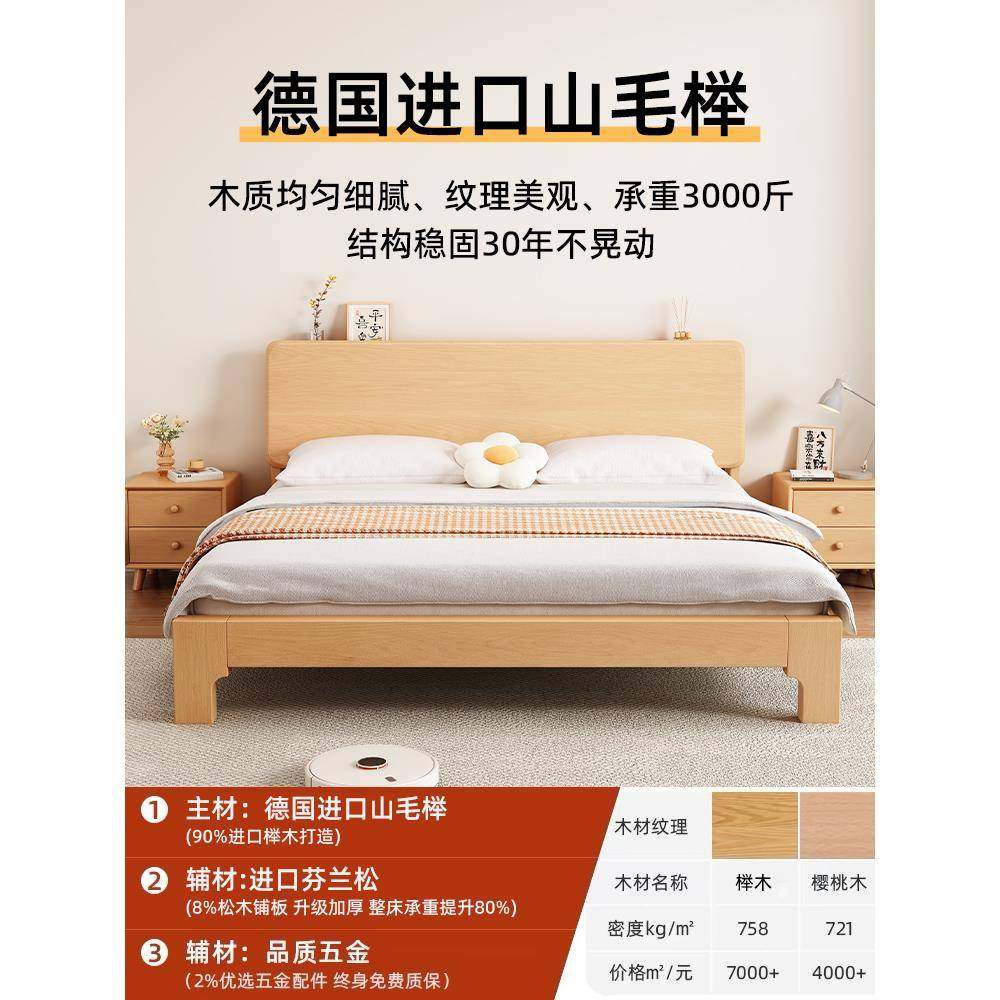 m人y床全实木轻奢现代主简约1.5米卧双床榉木清漆户榉木大气1.2小