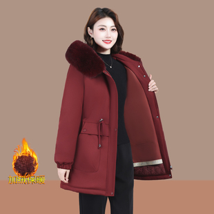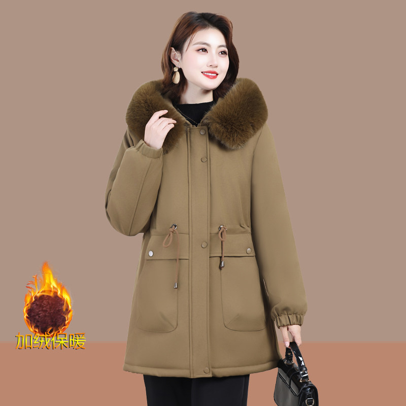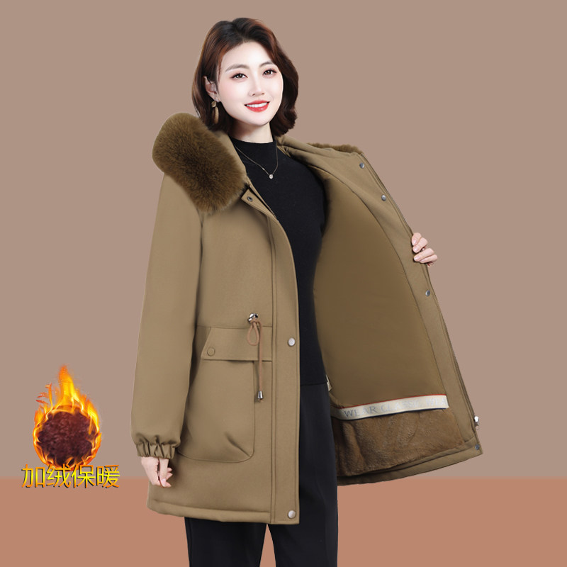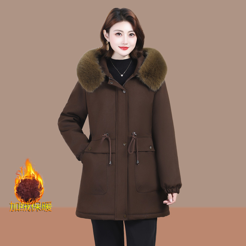 加绒加厚保暖中长款 中老年女装 妈妈装 毛领派克服冬季 棉服外套 时尚