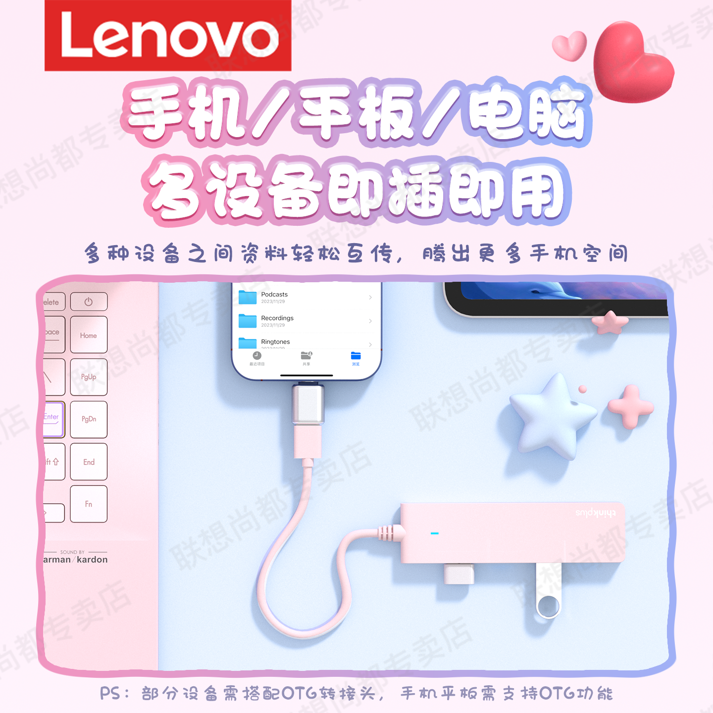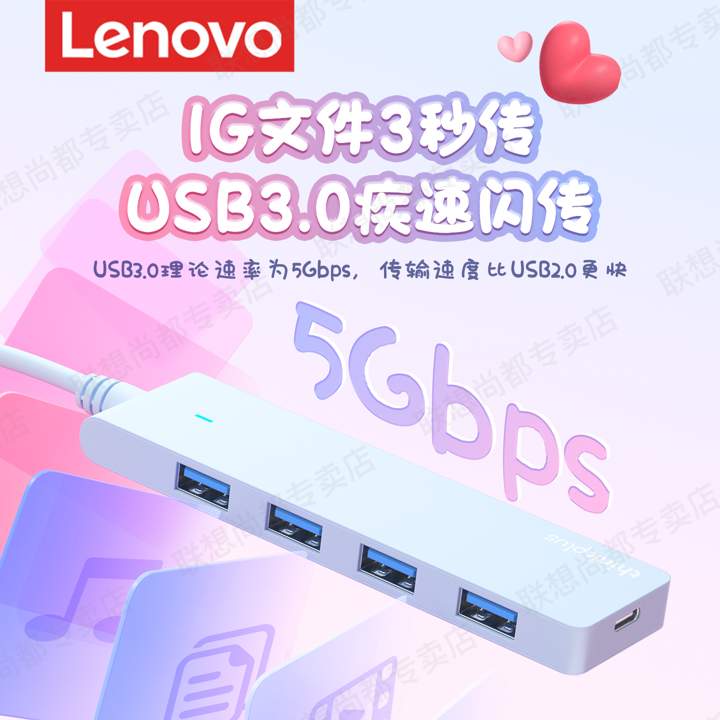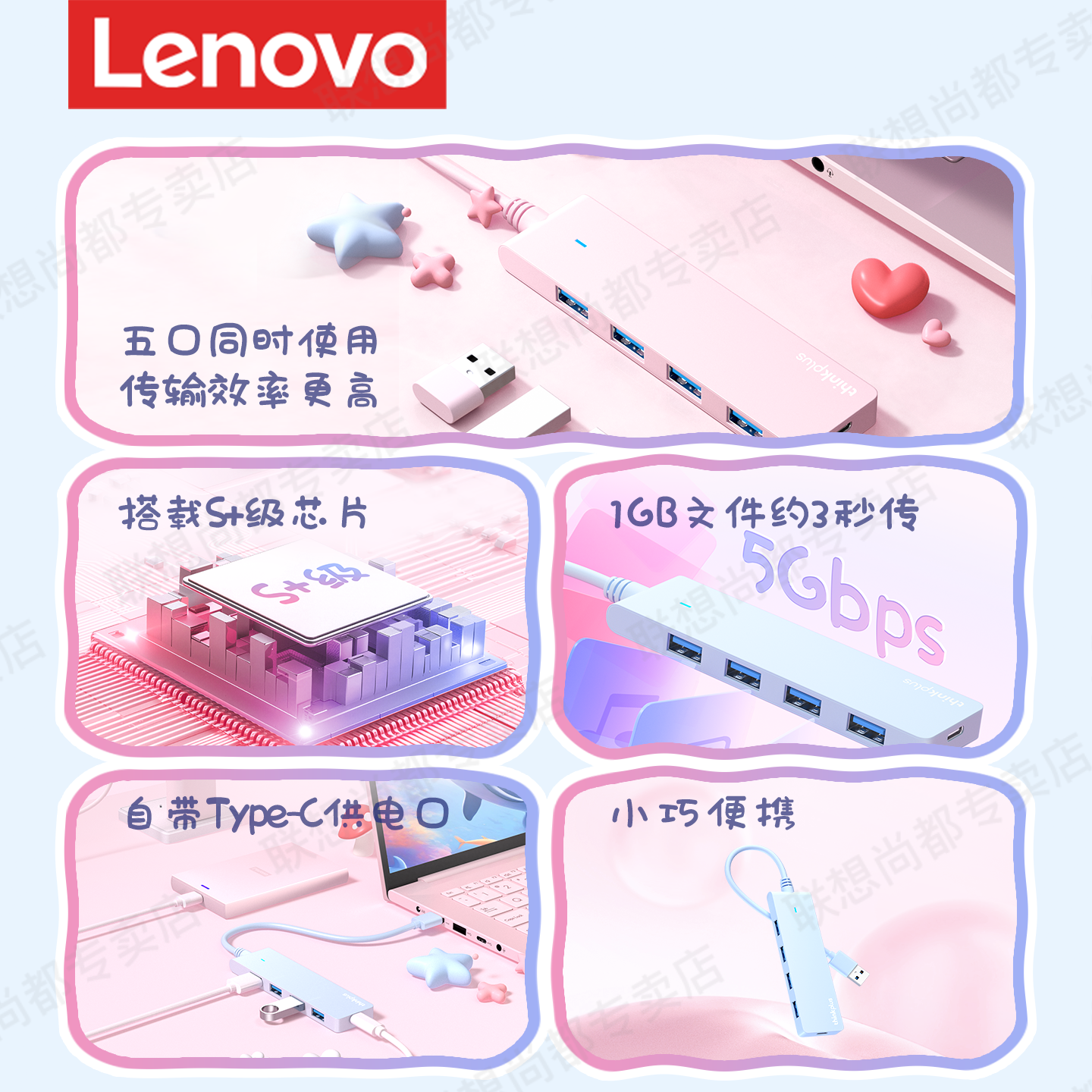 联想usb扩展器插头多口3.0集分线器转换接头一拖四外接u盘硬盘hub延长线笔记本电脑多接口适用华为苹果拓展坞
