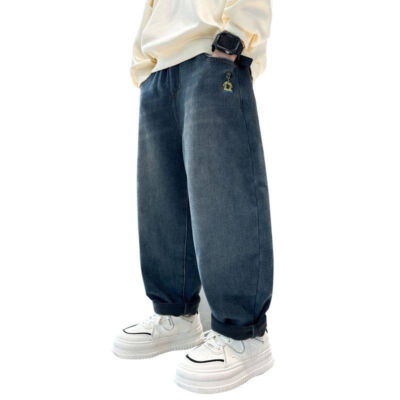 加绒宽松直筒阔腿裤 女童春秋牛仔裤 洋气冬装 中大儿童韩版 2025新款