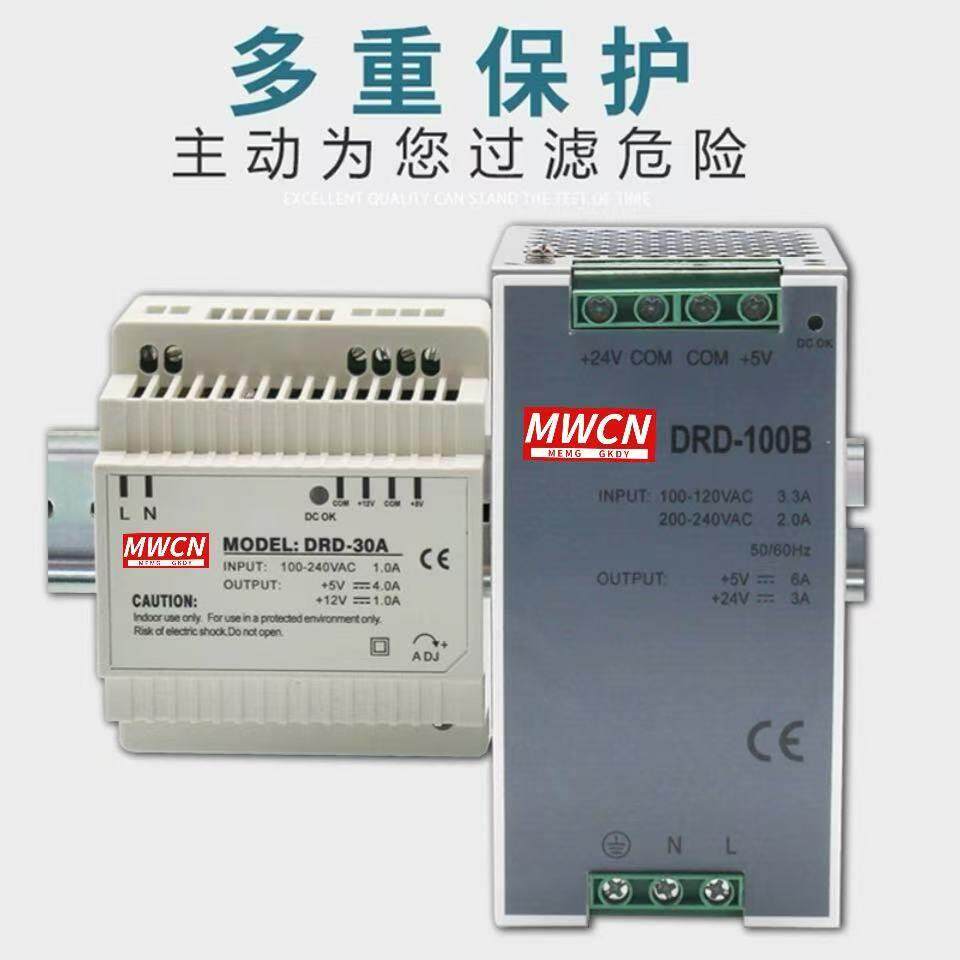 明纬EDR导轨式 XDR直流120E150开关电源220转12V24V48伏36变压器75