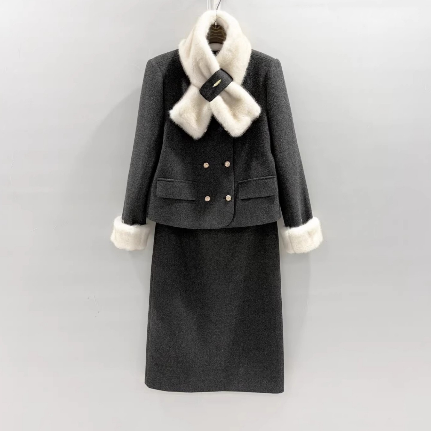 紫萱雅MBY26A009芳兰蕊2026春季 气质显瘦双排扣小香风套裙女 时尚