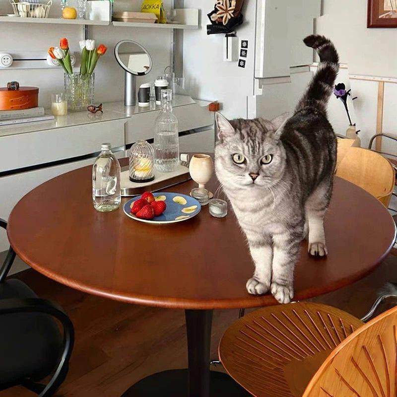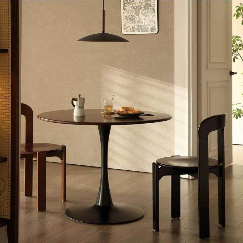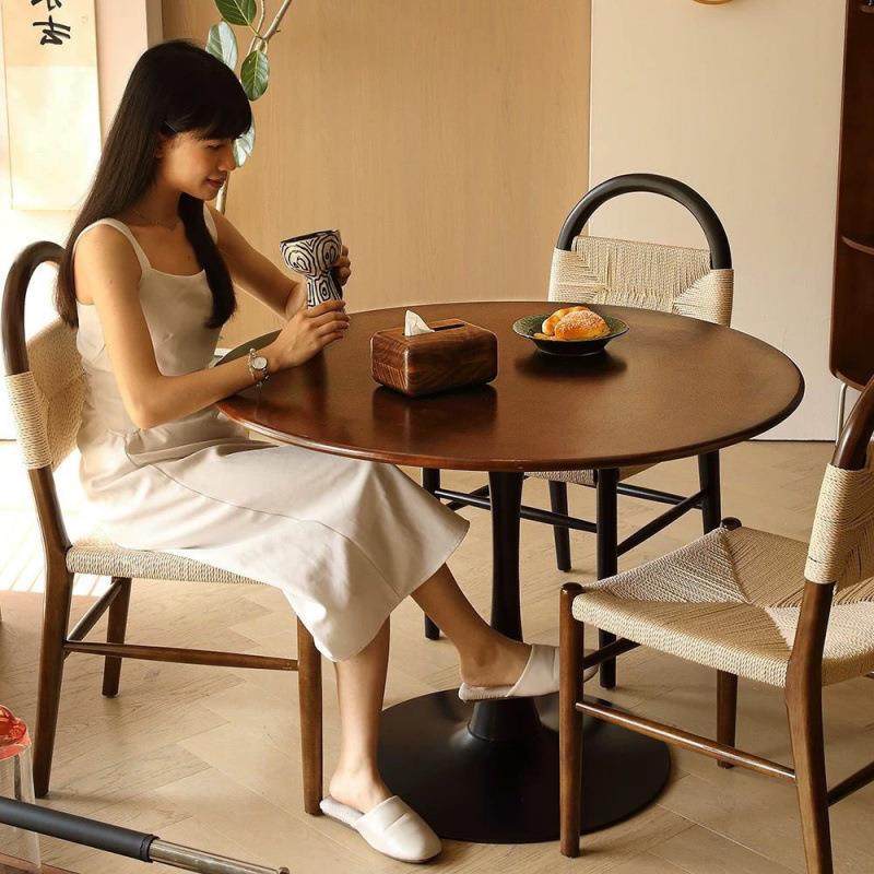 网红爆款 北欧复古郁金香胡桃圆形实木圆桌餐桌家用小户型咖啡阳台
