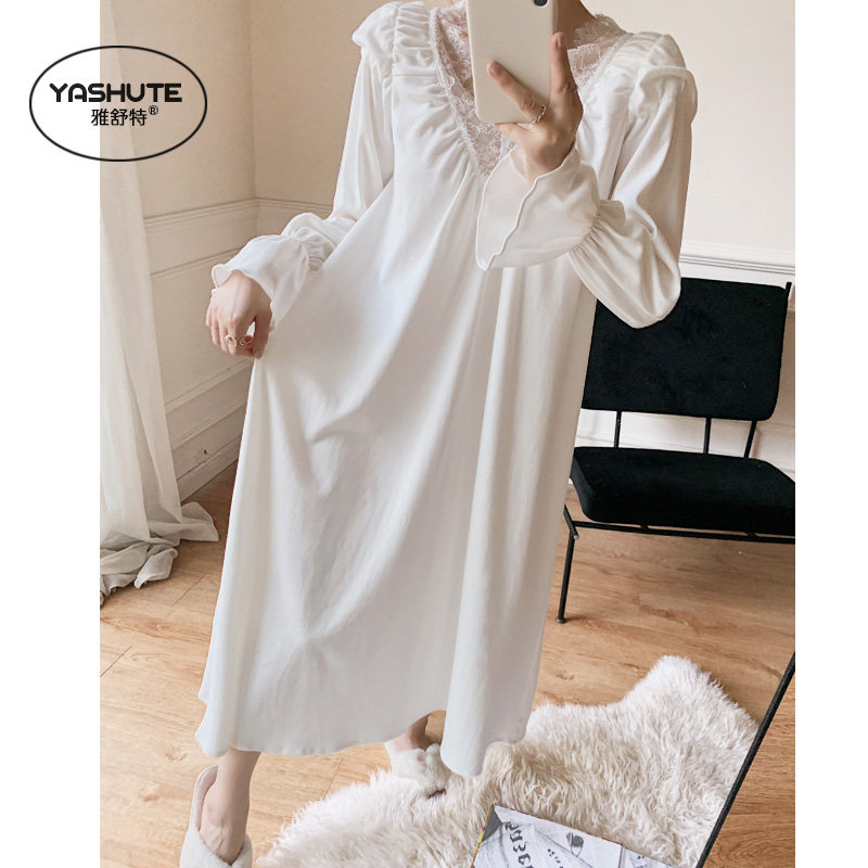 性感系带高级感浴袍睡裙公主睡衣 珊瑚绒长款 法式 蕾丝睡袍女秋冬季
