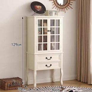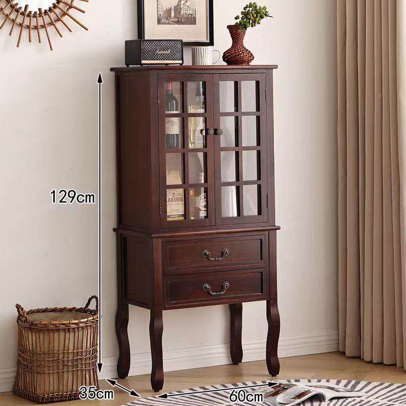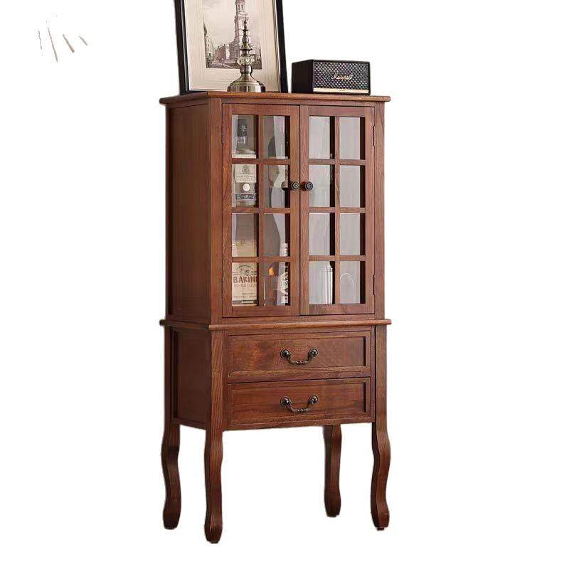 美式 厅复古酒饰柜电视边柜储物 全实木柜双门玻璃展客示柜欧VTZ式