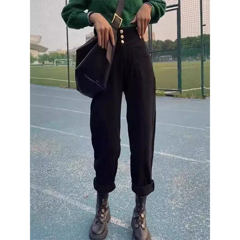 子梨型身材宽高黑色哈伦裤 速发大码 春秋裤 松腰直仔牛筒裤 装
