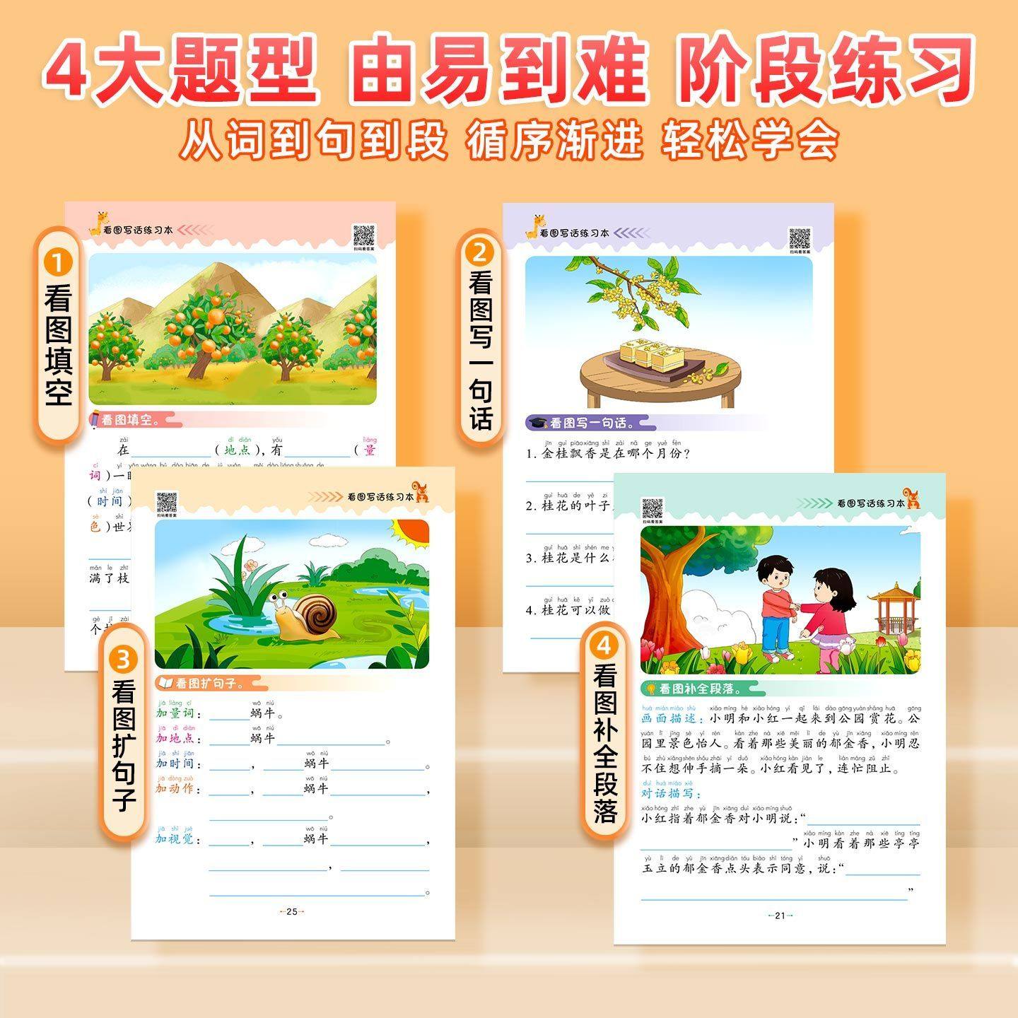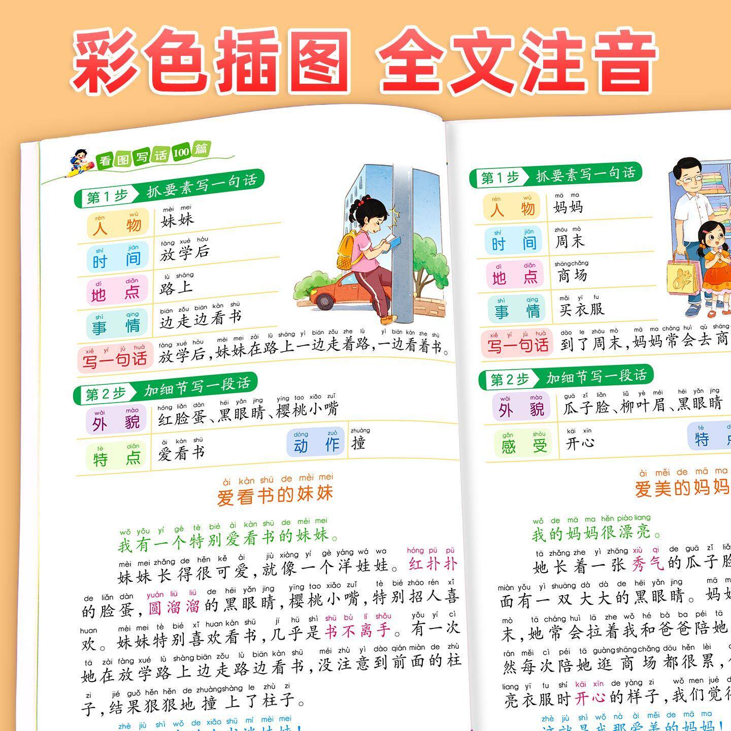 看图写话一年级专项训练人教版 二年级上册下册看图说话写话作文素材积累大全每日一练 小学生语文写作启蒙看图写话100篇范文注音版
