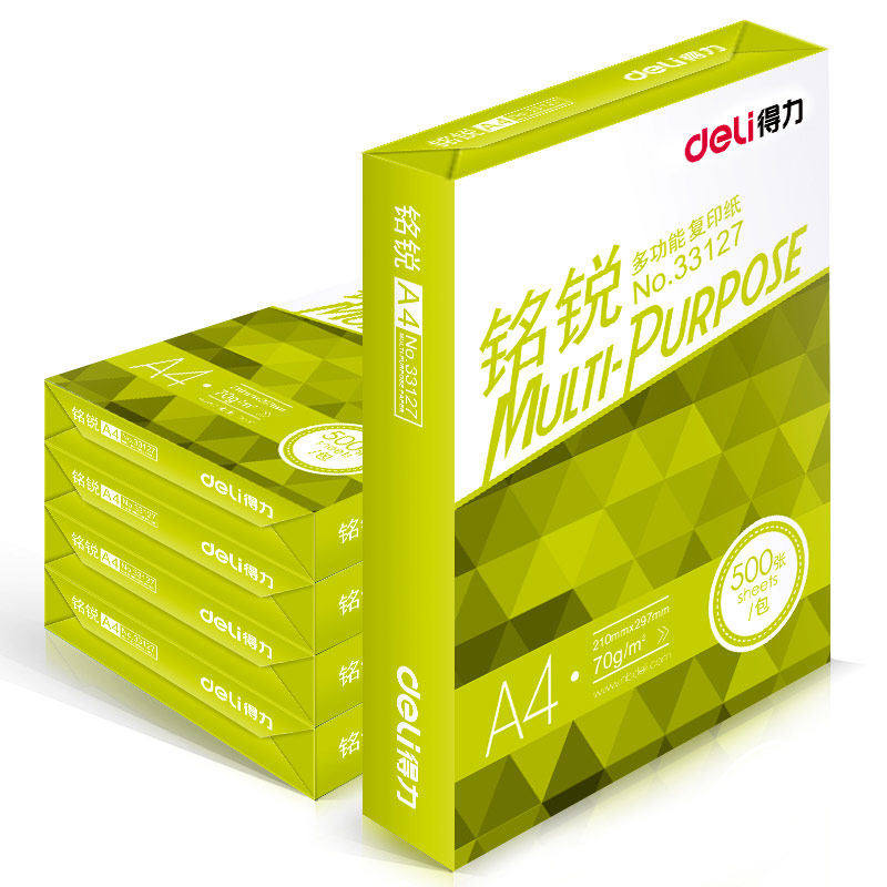 得力铭锐A4复印纸打印纸70g单包500张办公用品双面打印不卡纸白纸学生用草稿纸打印纸整箱2500张
