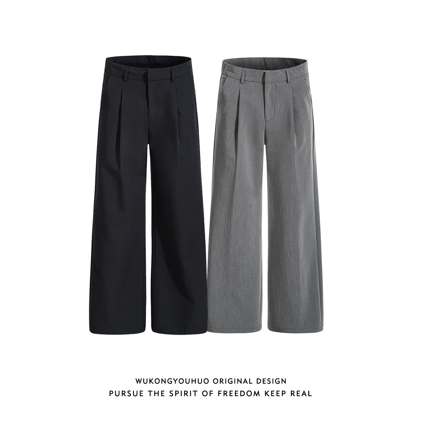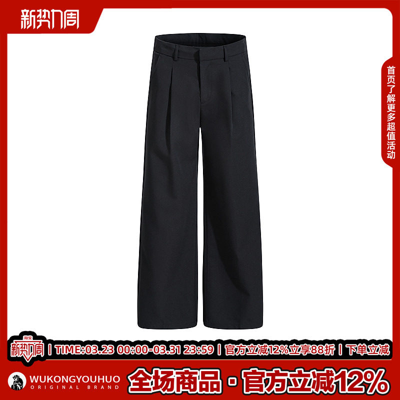 悟空有货潮牌简约纯色直筒垂感西裤 男复古宽松设计感百搭阔腿长裤