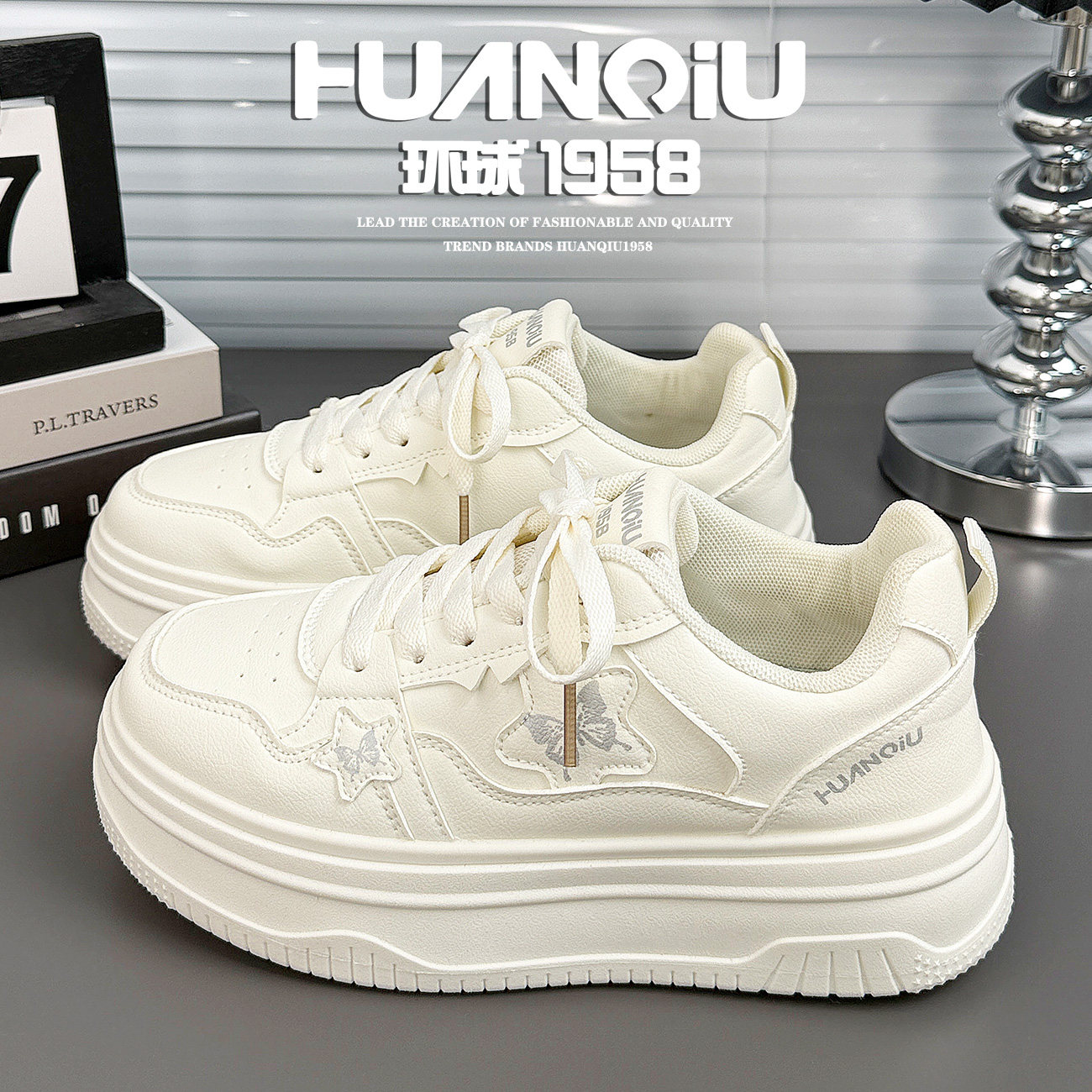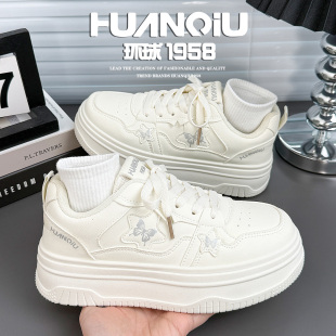 学生鞋 环球甜美风蝴蝶小白鞋 厚底增高百搭休闲板鞋 新款 女2026春季