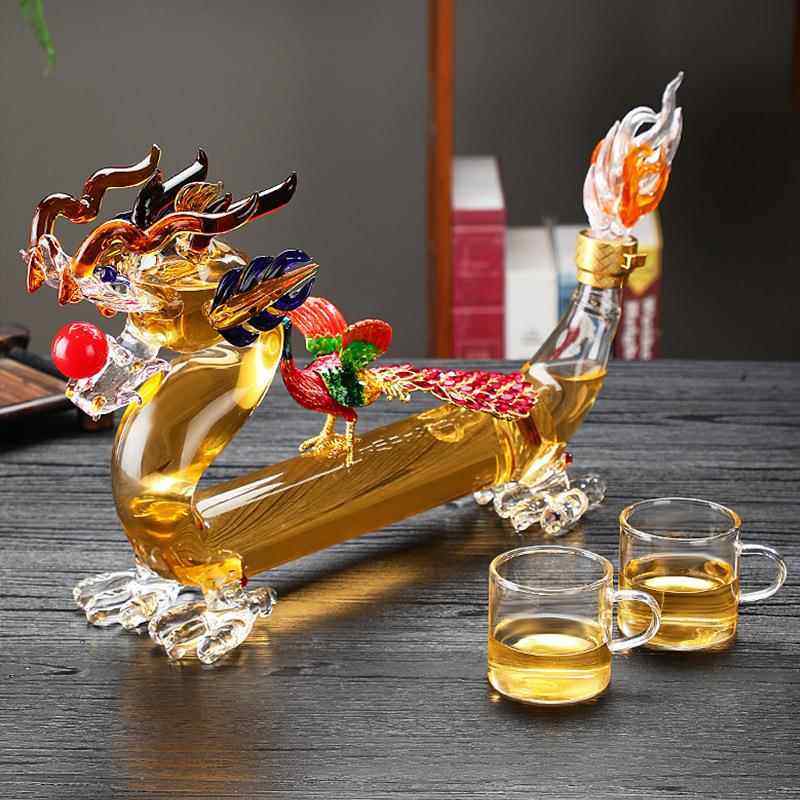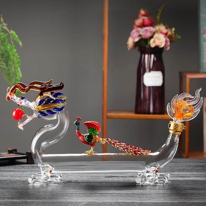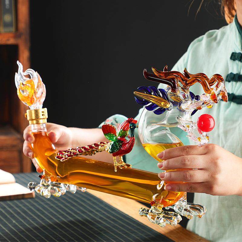 供应十二生肖泡酒瓶龙型高硼硅泡酒瓶异型创意生肖龙凤造型醒酒器