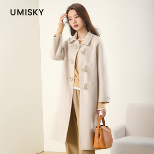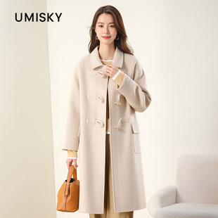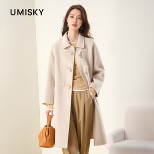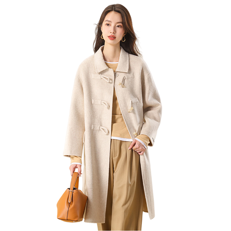宽松中长款 新款 毛呢外套 牛角扣羊毛大衣女冬季 omont蛋挞家