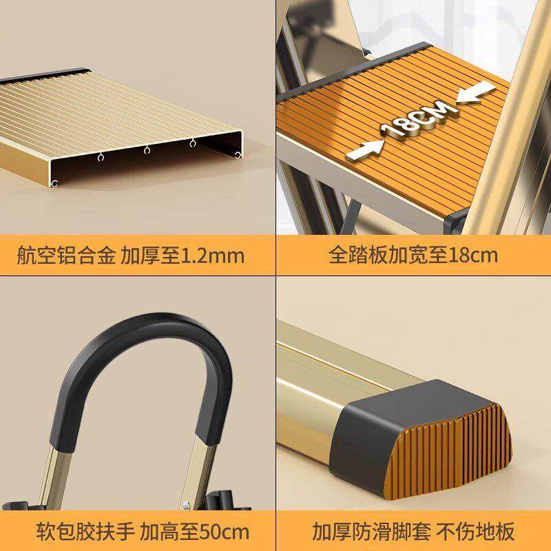 奶油风家用梯子轻便折叠伸缩加厚人字梯多功能乔迁便携创意爬梯凳