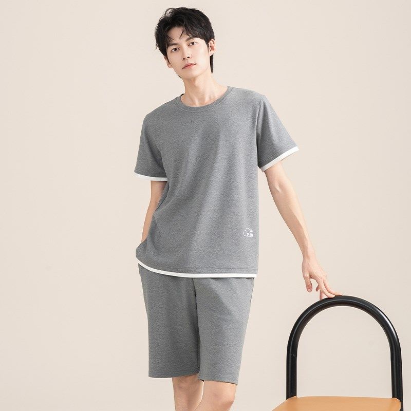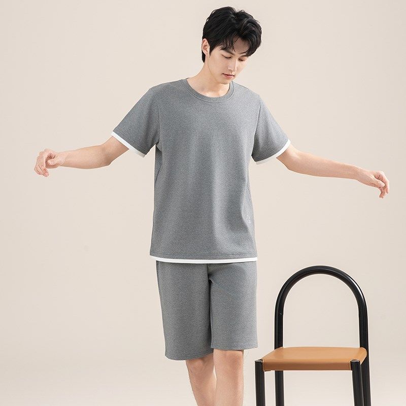 休闲居家大码 宽松时尚 纯棉短袖 2025夏季 套头两件套装 男士 短裤 新款