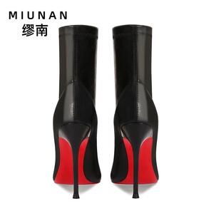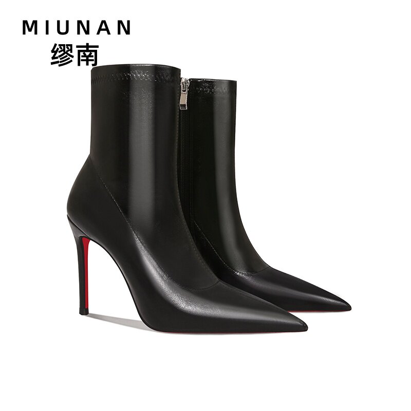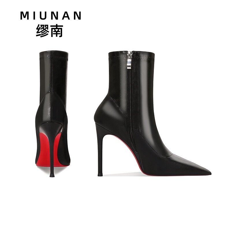 缪南高跟靴子爆款 红底拉链短靴女细跟瘦瘦靴不累脚高级感 2025新款