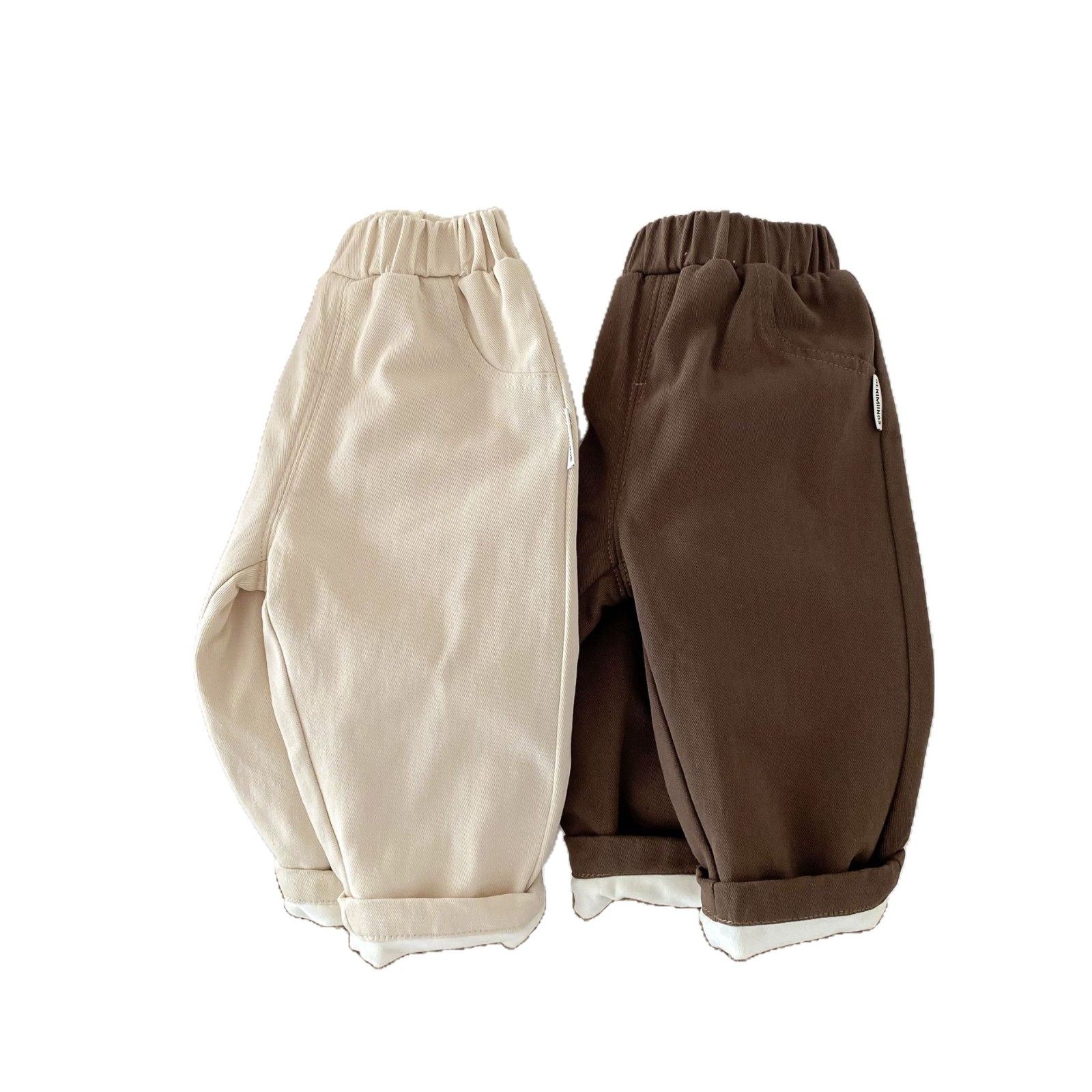 宝宝子潮裤 5岁冬季 保暖休闲裤 纯色 男童韩版 儿童加绒老爹裤