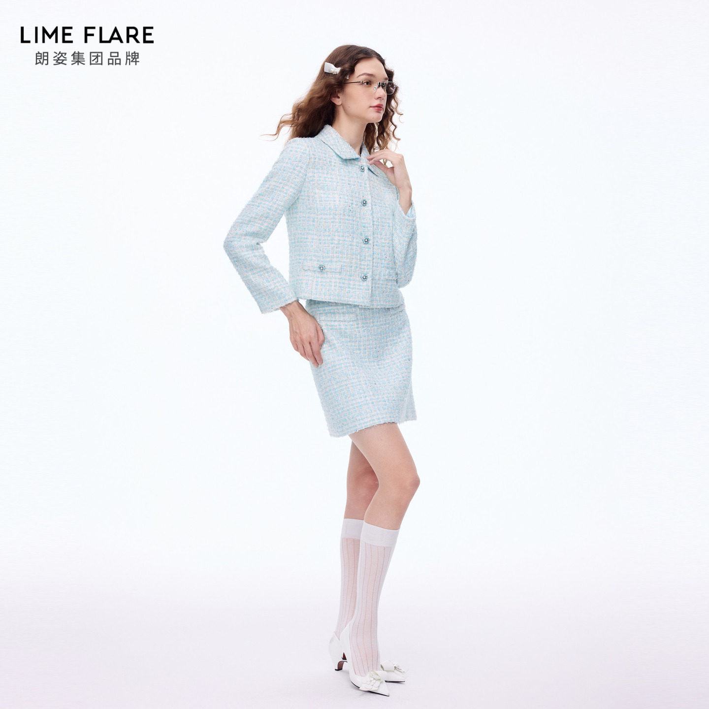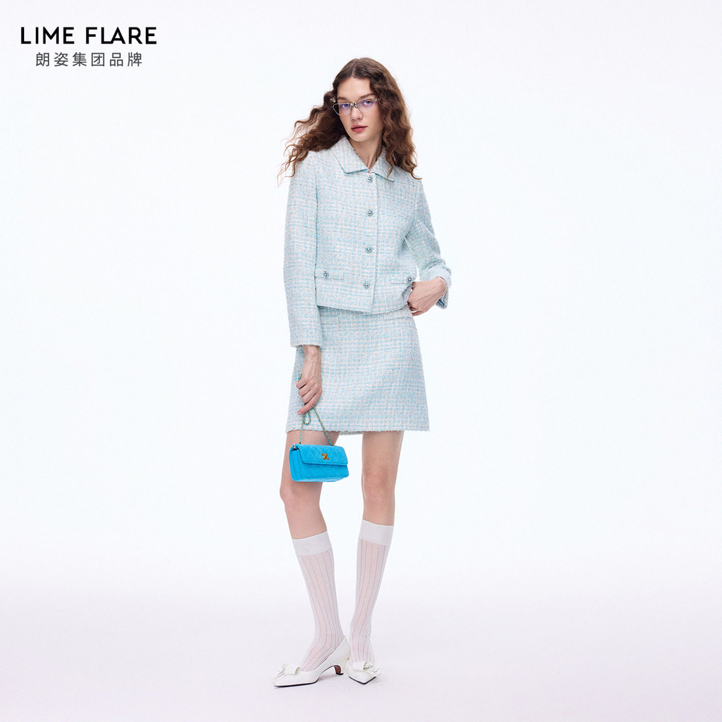 气质千金香风外套26春新款 朗姿莱茵福莱尔钻扣编织花呢套装 裙法式