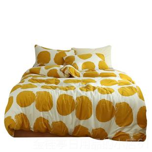 高档类A简约油画风天竺四件套全棉100亲肤棉针织被套床三件棉套纯