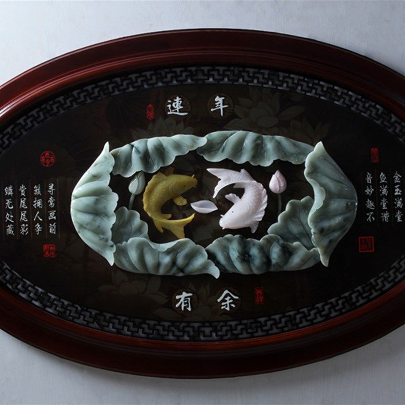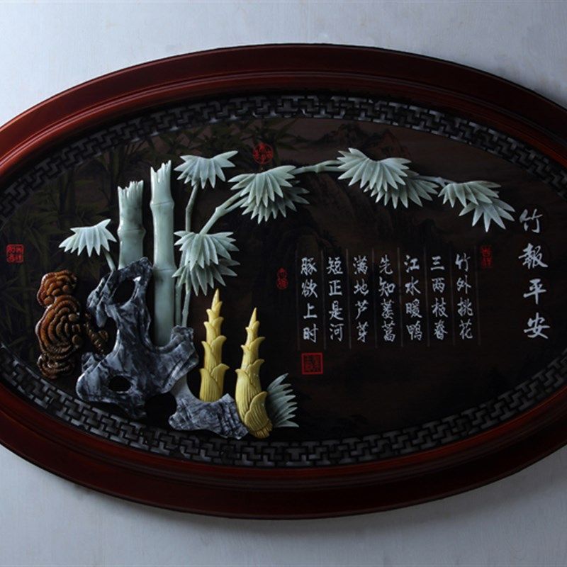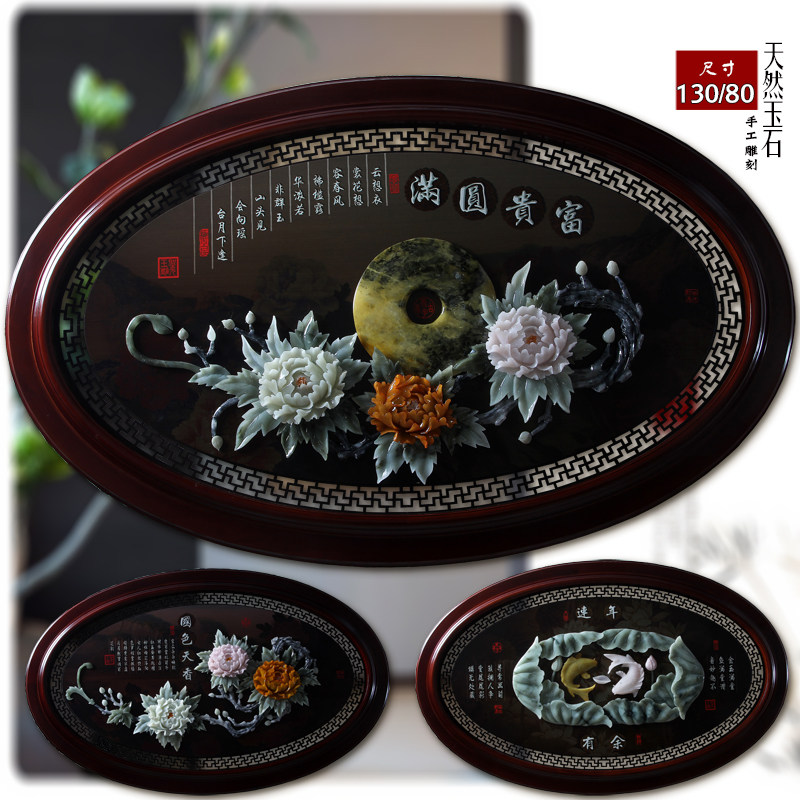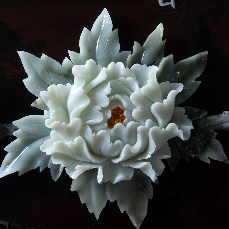 牡丹 雕刻 玉雕工艺品画挂件客厅书房玄关背景墙壁装 饰新古典中式