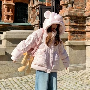 羽绒外套 新款 白鸭绒甜美羽绒服立体玩偶帽超轻薄款 外套2026秋季