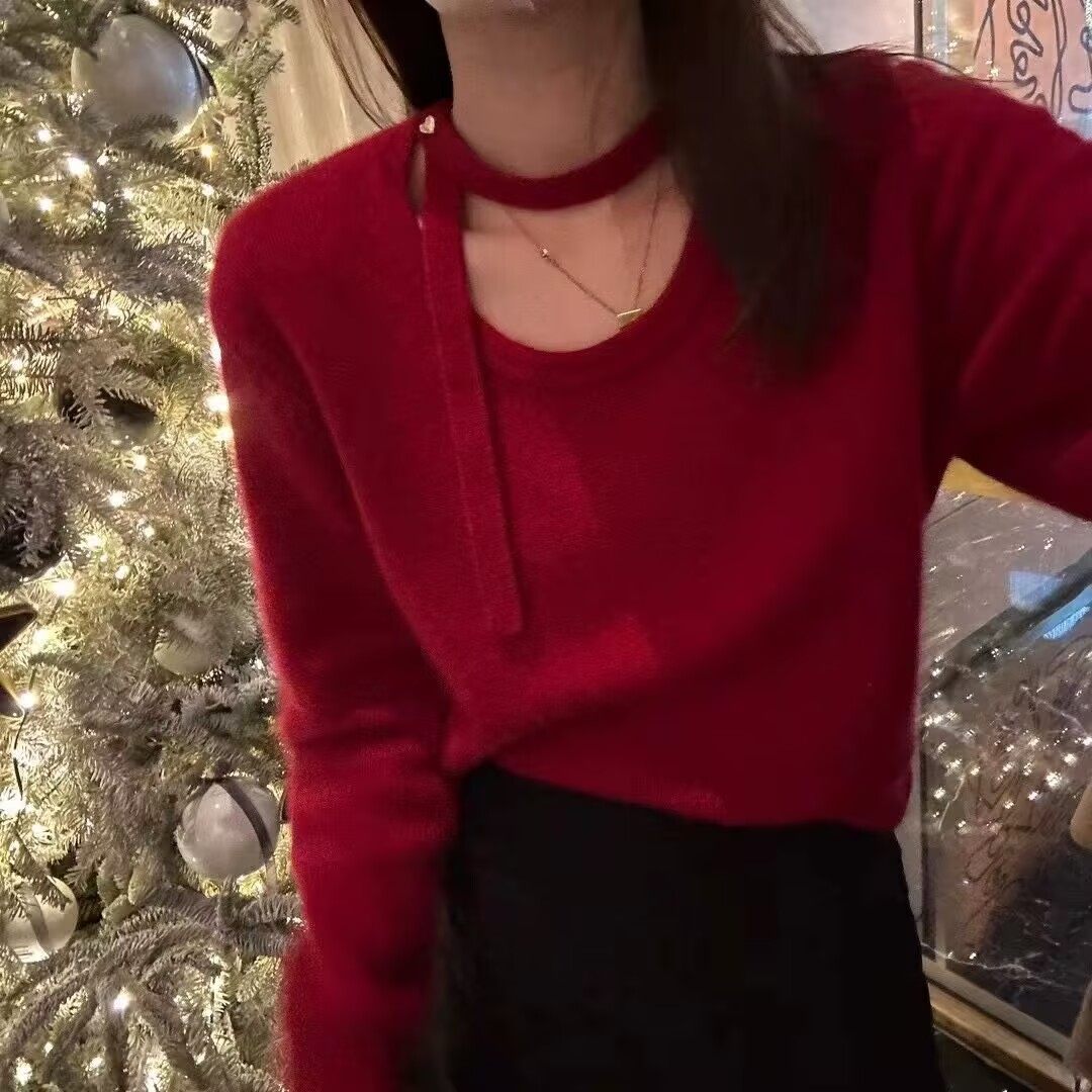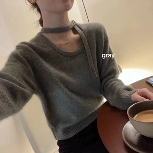 H170121847 25冬小心机领口飘带扣子柔软显瘦针织毛衣 韩版