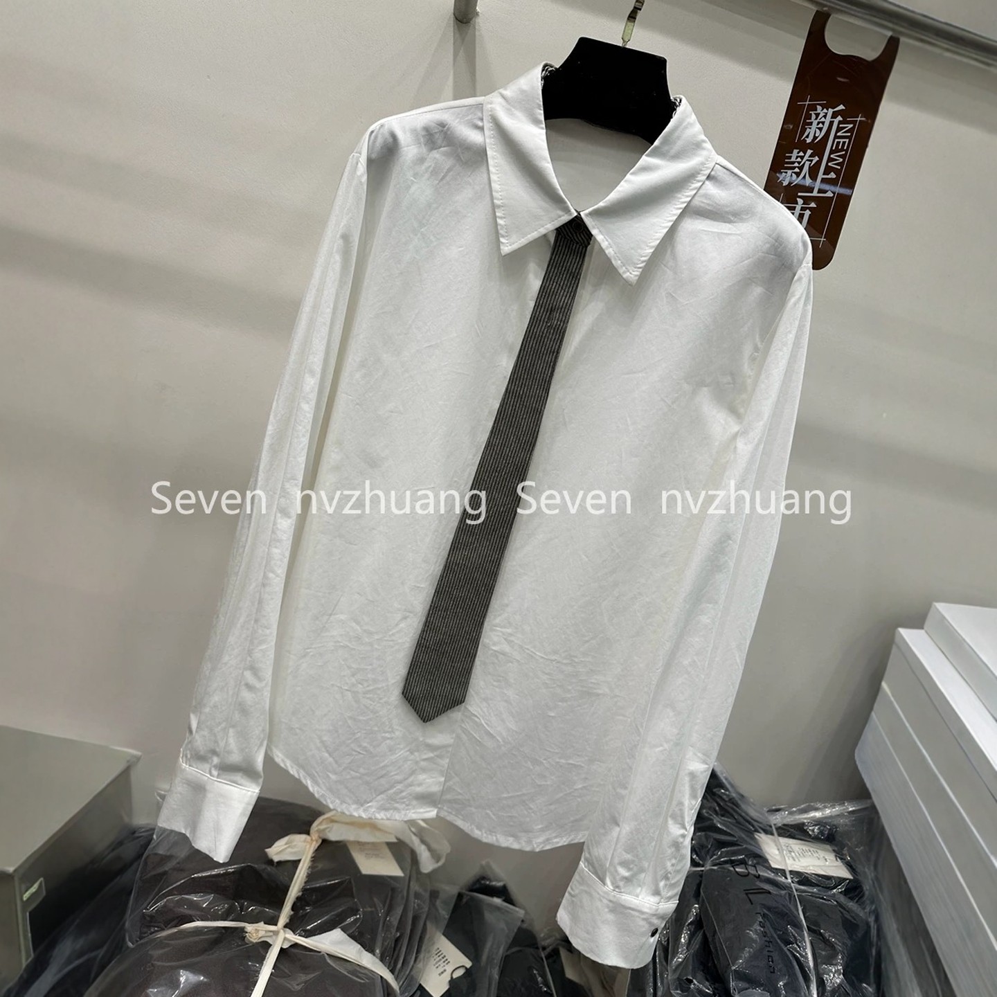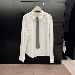 衬衫 宽松翻领领带设计感宽松显瘦长袖 百搭上衣 新款 欧洲站2026春装