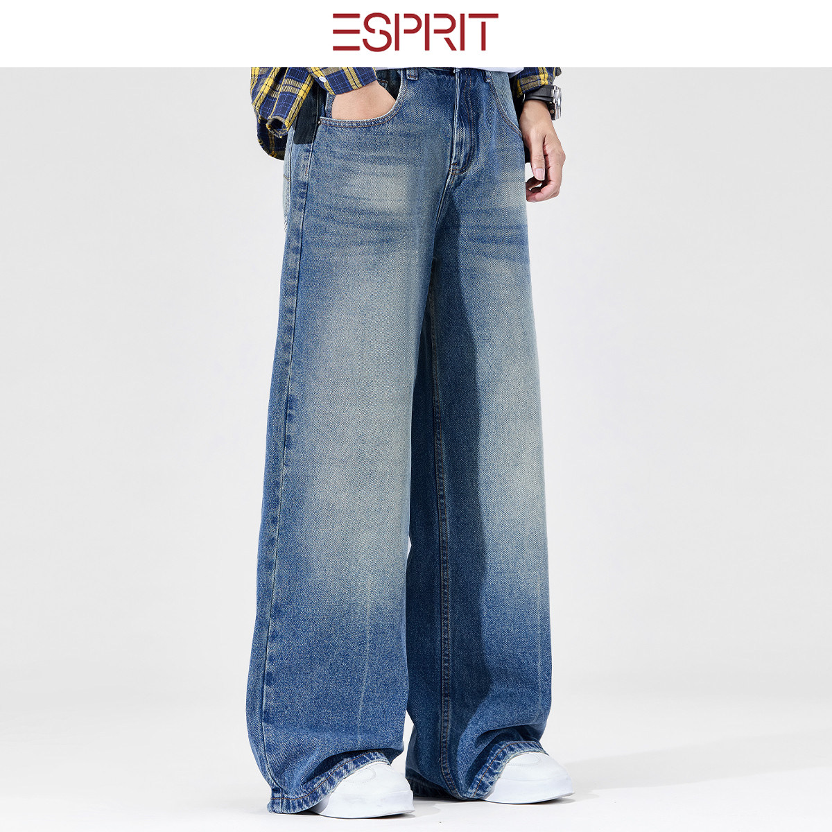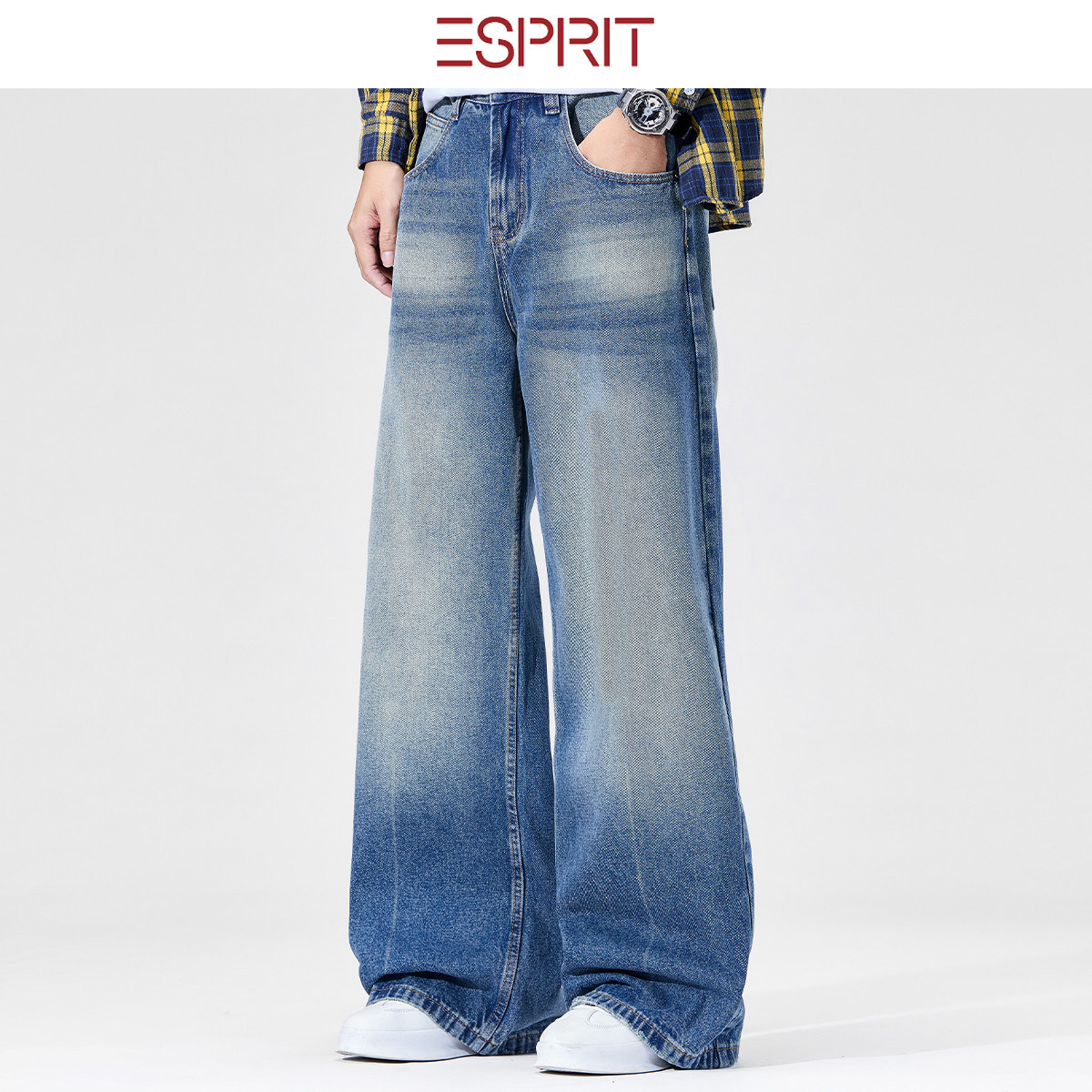 休闲百搭直筒裤 ESPRIT 男阔腿长裤 复古水洗牛仔裤 埃斯普利特美式