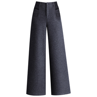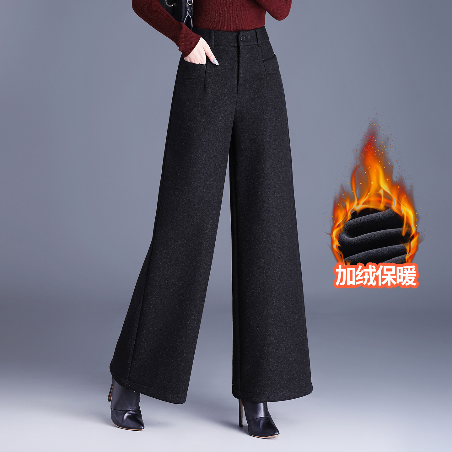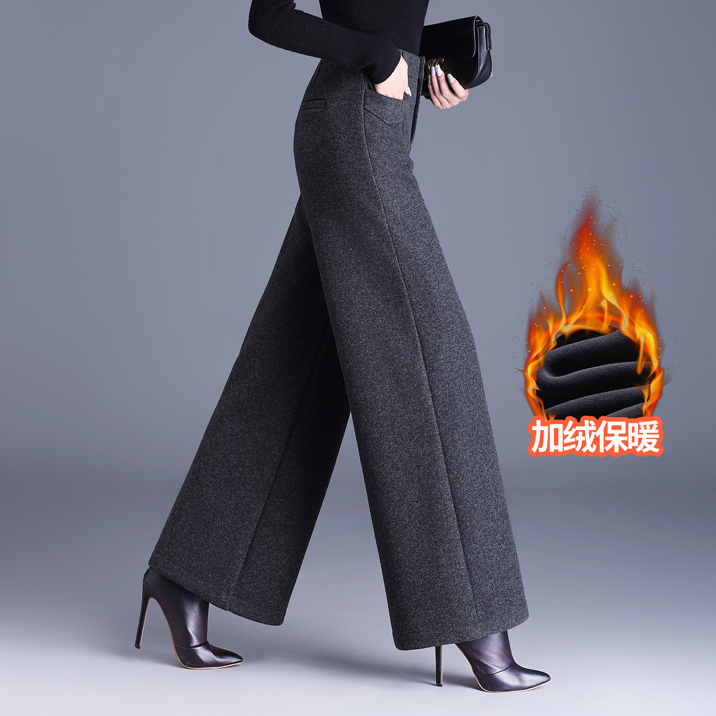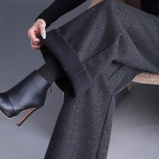 宽松直筒裤 加厚小个子妈妈休闲裤 女冬季 加绒保暖气质羊毛呢阔腿裤