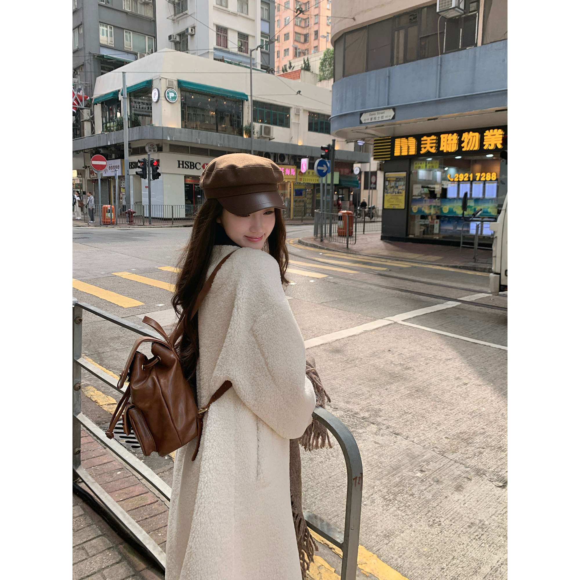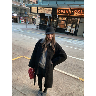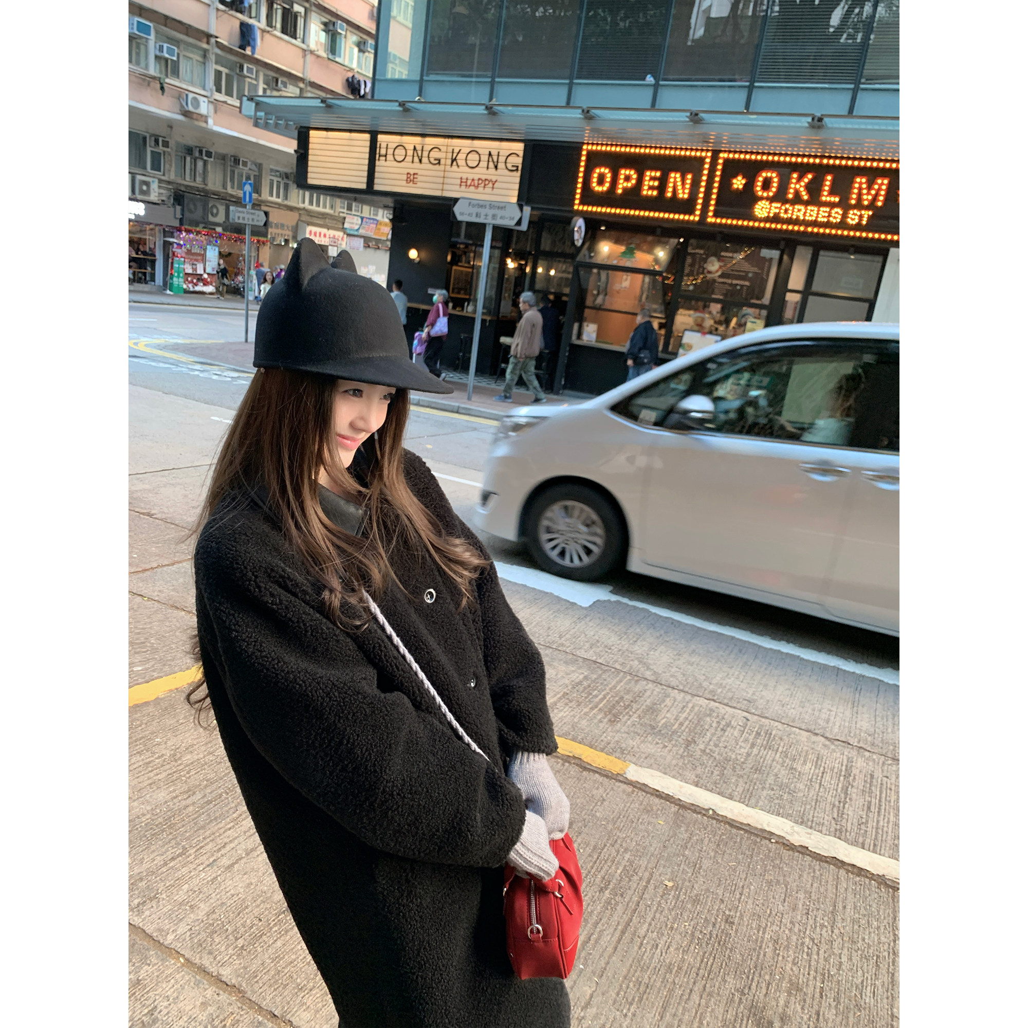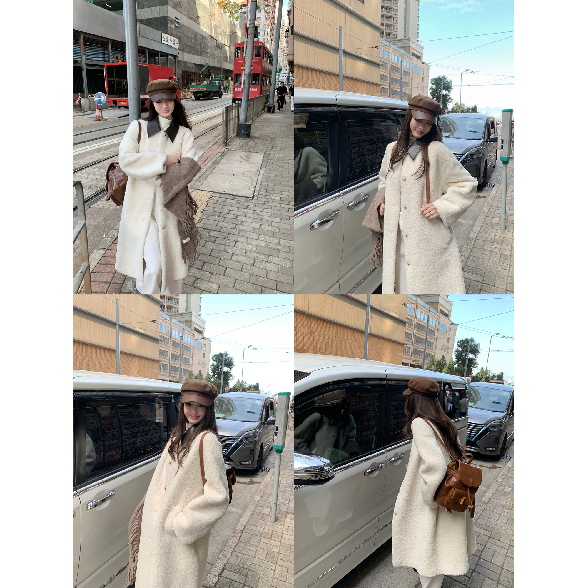 3ts 棕色10o羊毛皮草复古牛角扣大衣高级羊羔毛毛外套 折扣