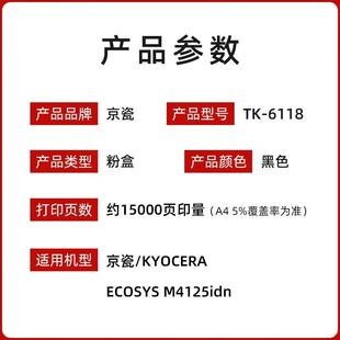 M4125碳粉 6118粉盒墨粉 京瓷m4125idn复印机粉盒硒鼓 京瓷TK 原装