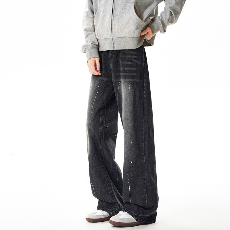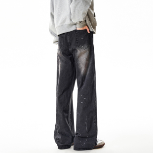高街牛仔裤 男式 子美式 休闲喷墨直筒宽松复古美式 新款 弯刀裤 秋季