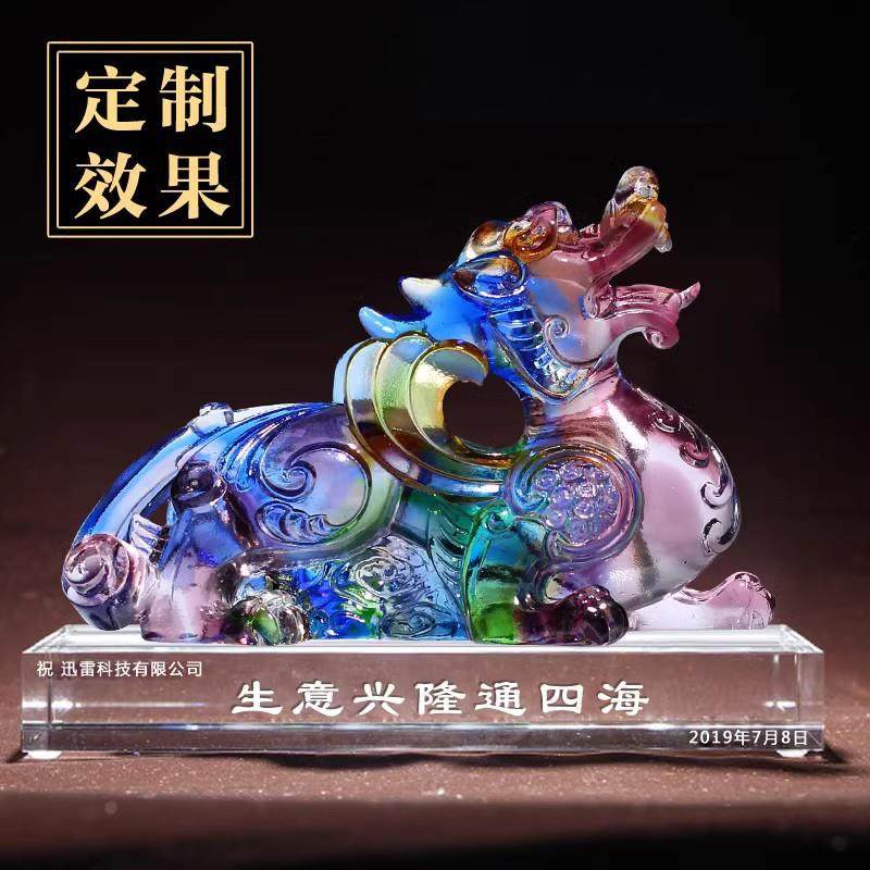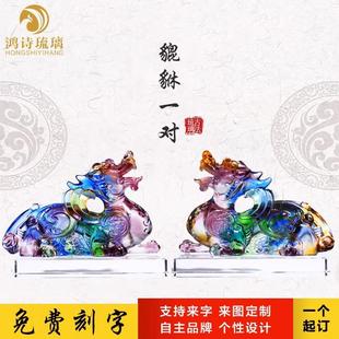 琉璃貔貅摆件一对公司开业年会送礼纪念刻字客厅水晶创意工艺品