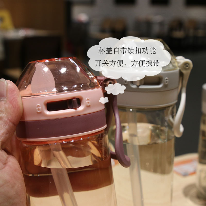 新款 带吸管水杯带提绳刻度女孕妇塑料杯耐热大人不漏水小学生杯子