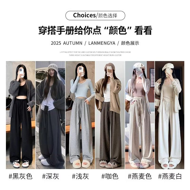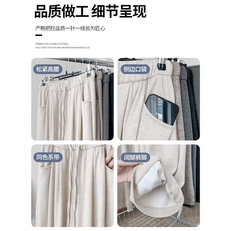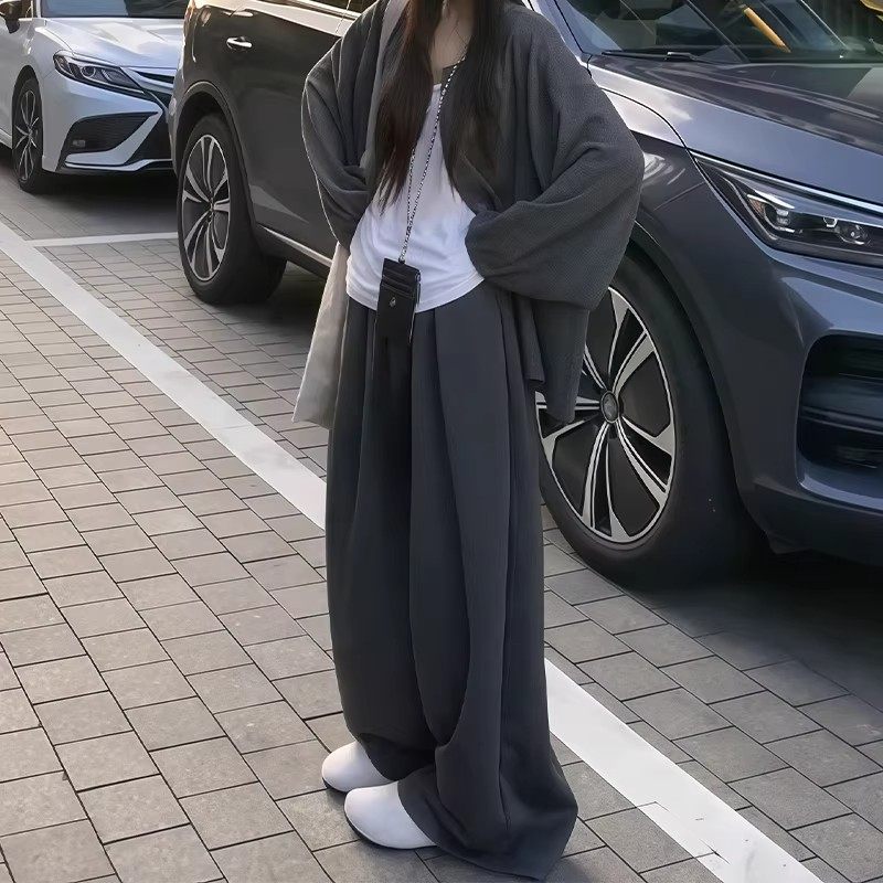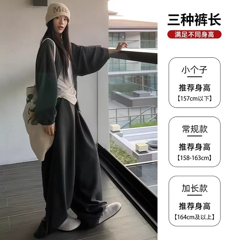 慵懒风深灰色糯米裤 女秋冬小个子休闲高腰宽松显瘦垂感软糯阔腿裤