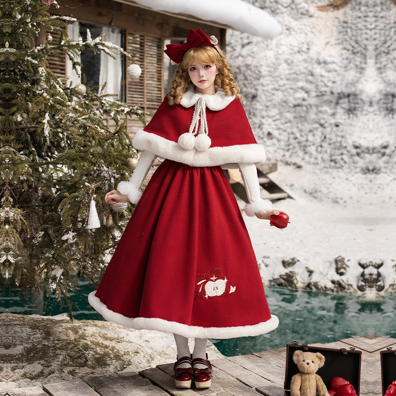 长托胸短jsk斗篷套装 新年款 withpuji原创设计 冬lolita 苹安果