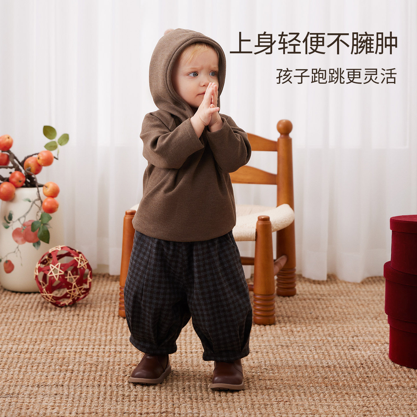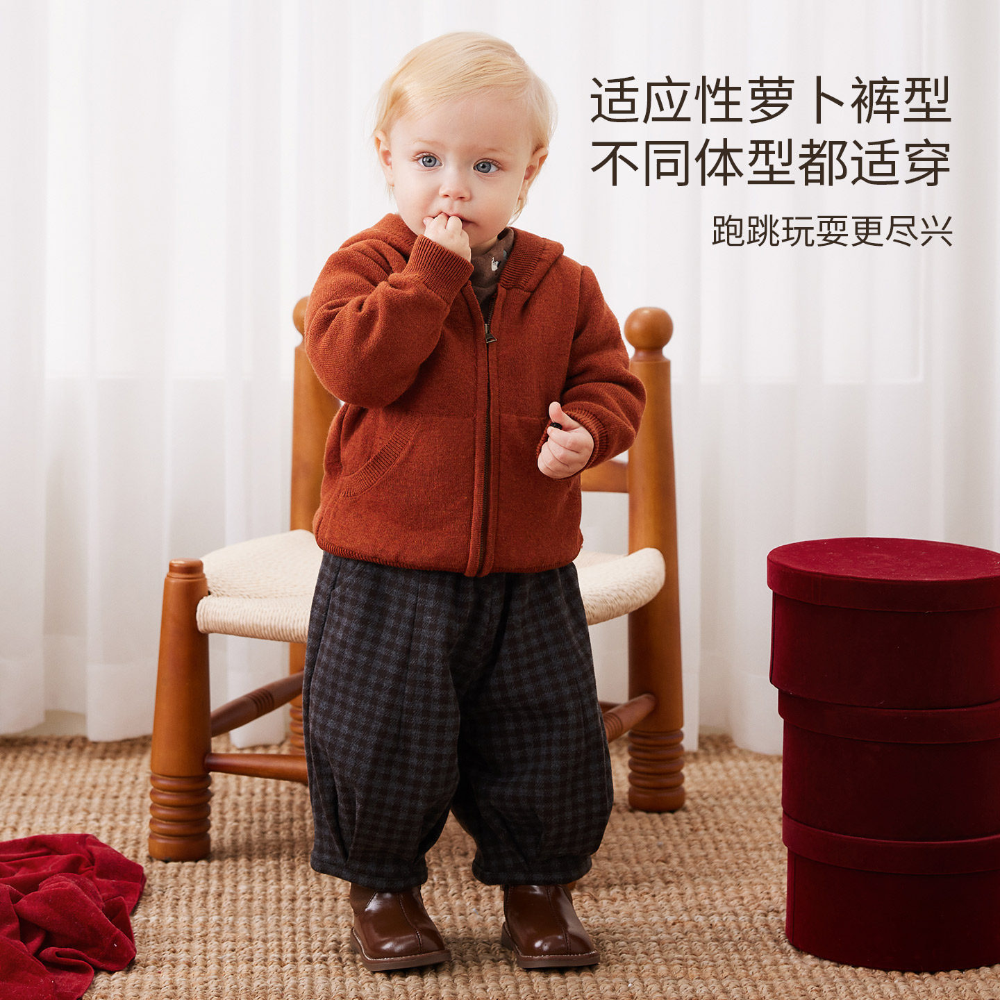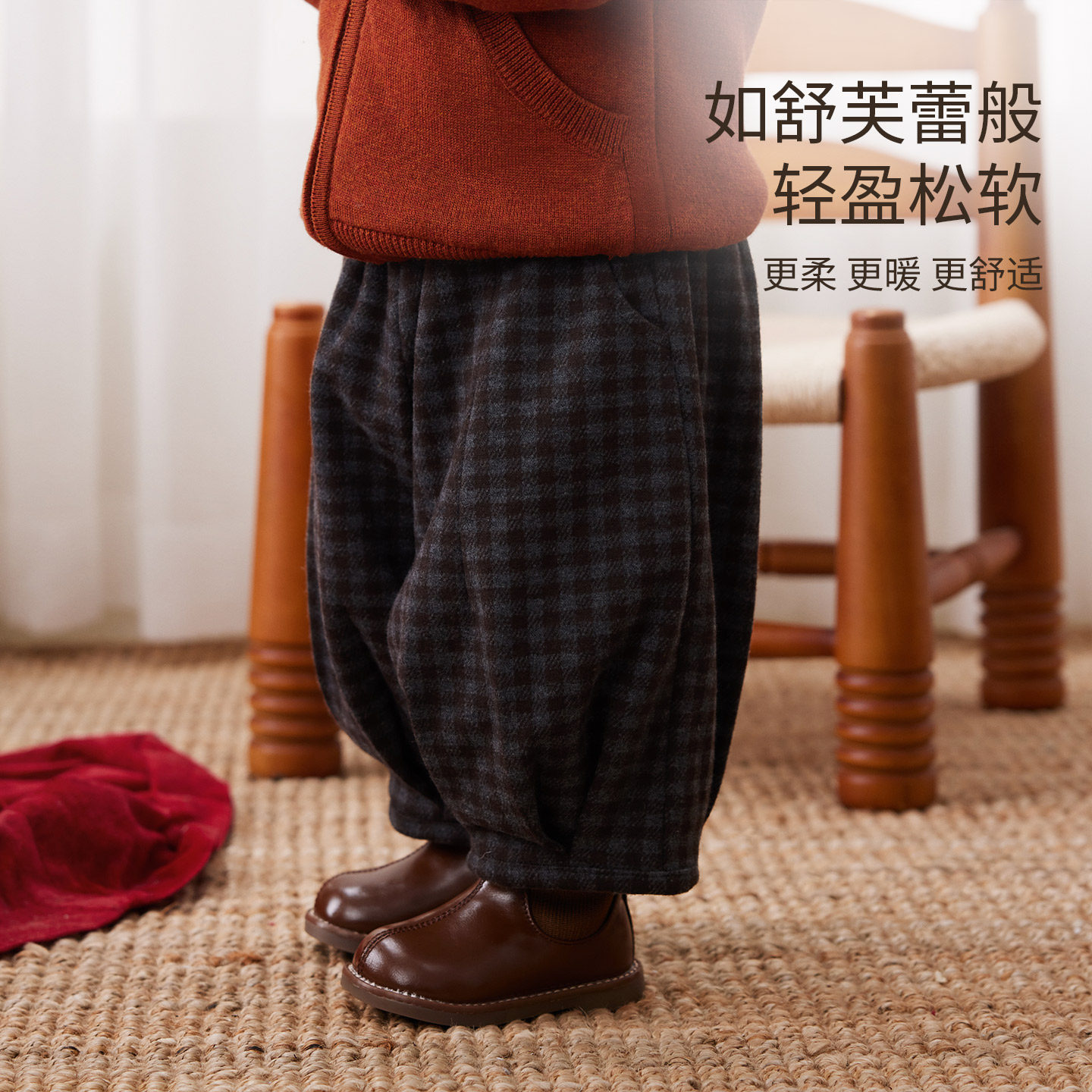 宽松萝卜长裤 Oak 男童保暖格子裤 子加厚摇粒绒秋冬新款 mont儿童裤