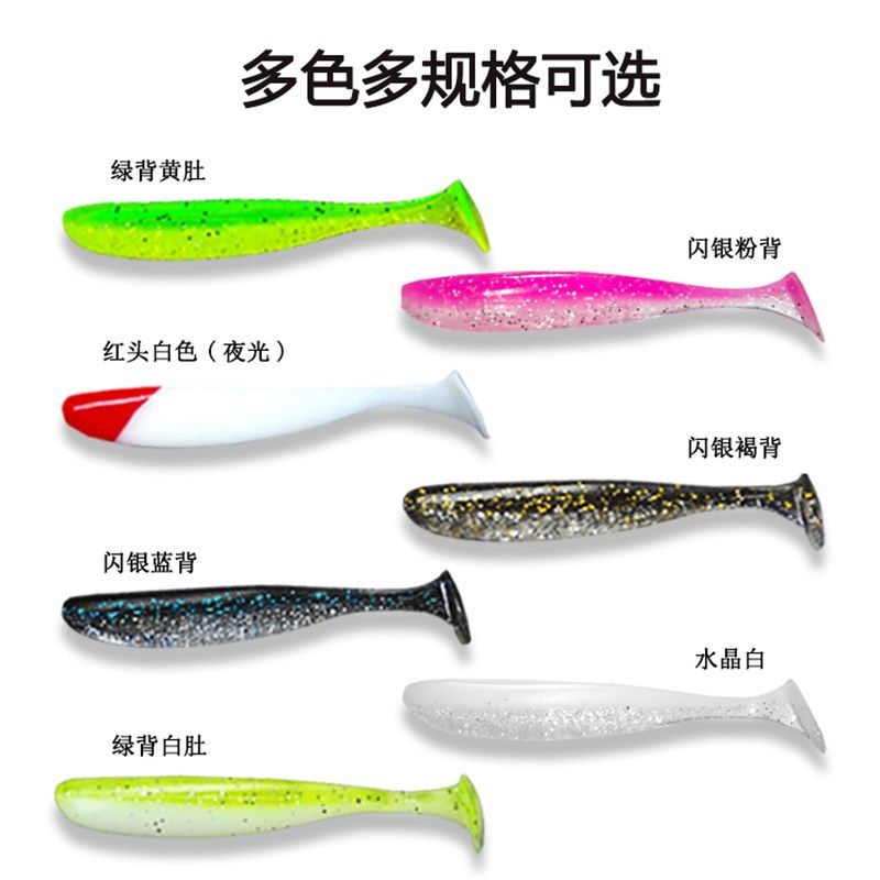 路亚宝贝t尾软饵螺纹t尾1斤加盐加虾味绿色柔软夜光鳜鱼翘嘴饵5.5