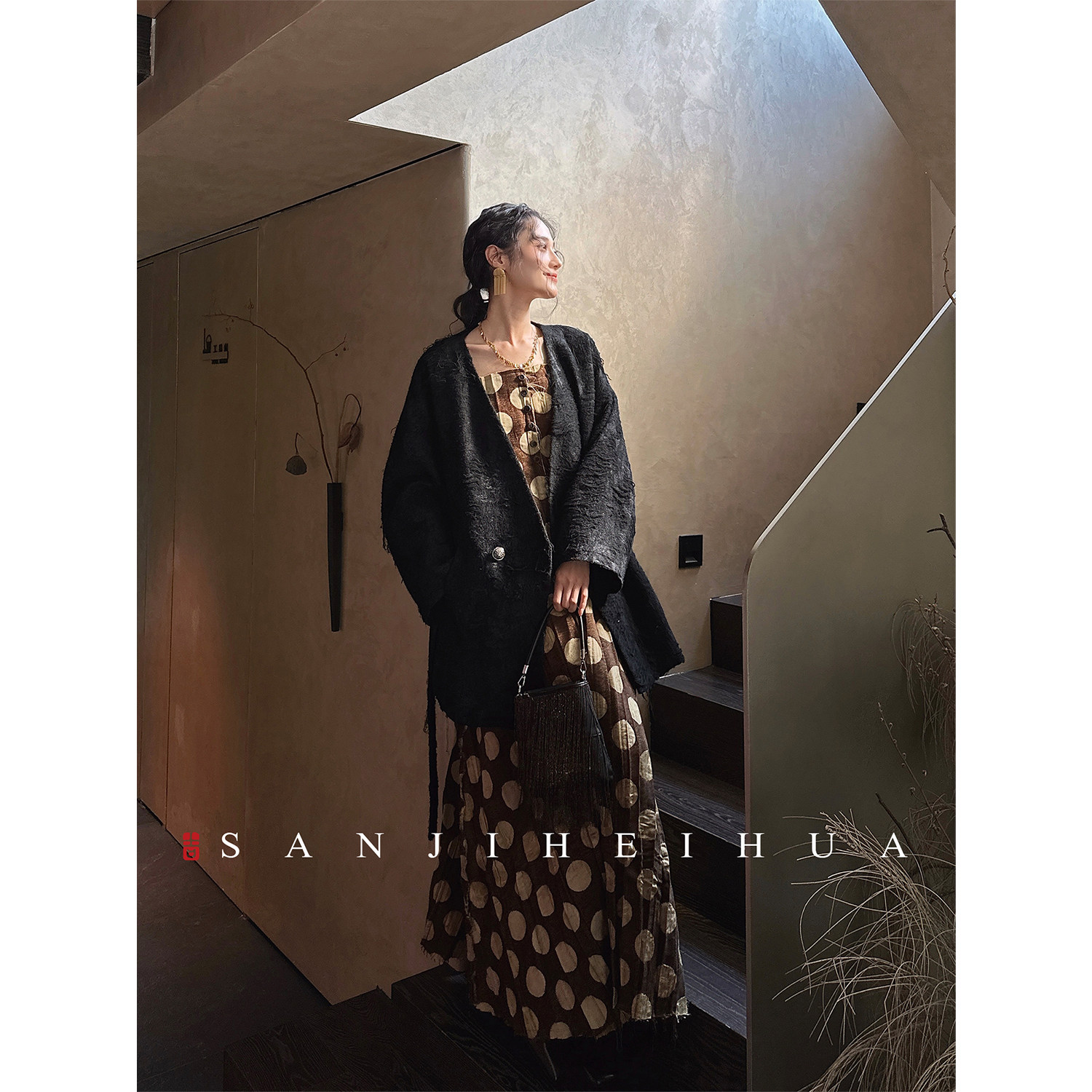 冬装 十三雾 加厚手工扎染立体压皱双面连衣裙 呼呼专享