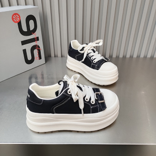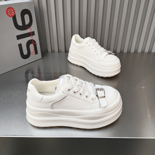 增高百搭款 品品松糕滑板鞋 2026春款 女鞋 圆头低帮皮卡带扣绑带韩版