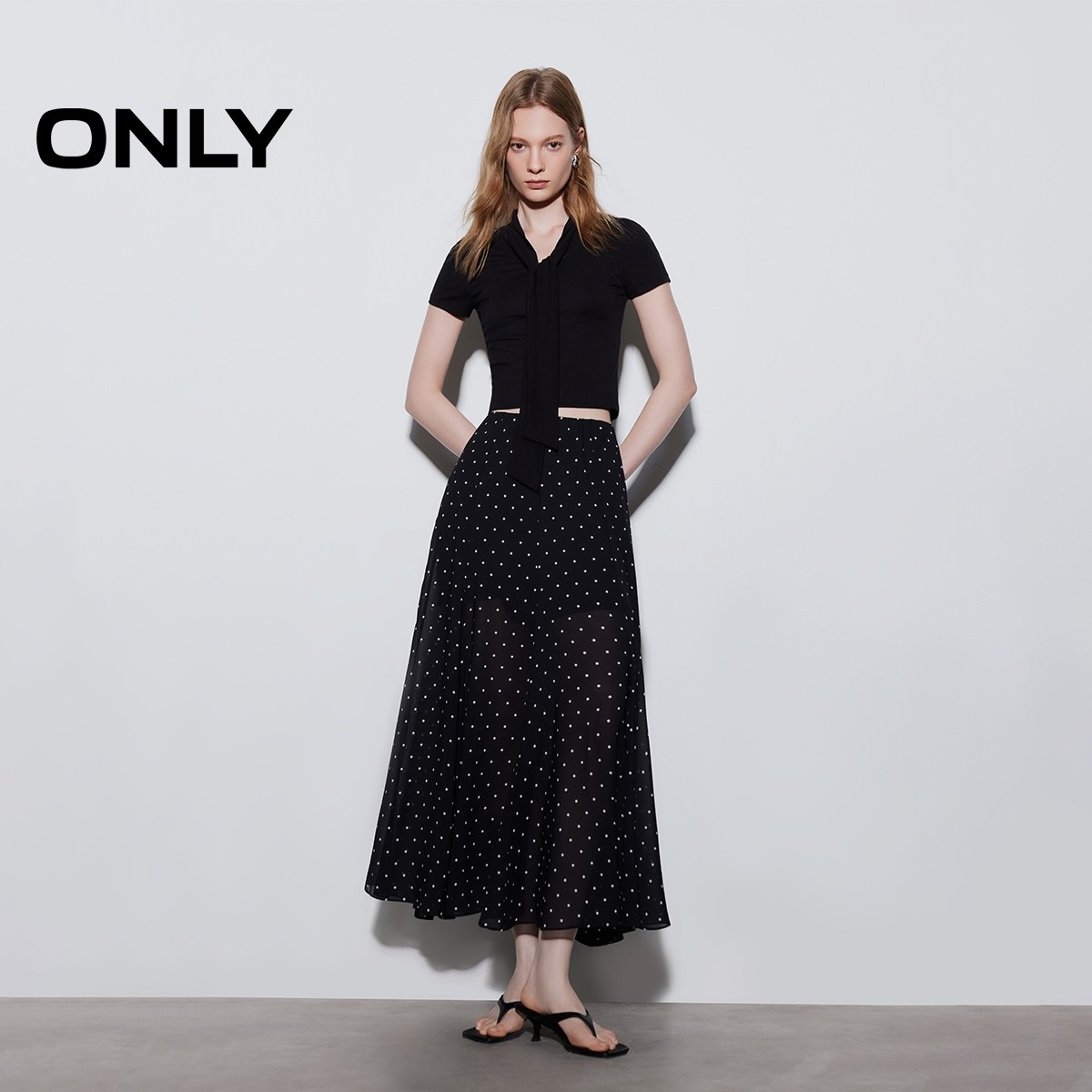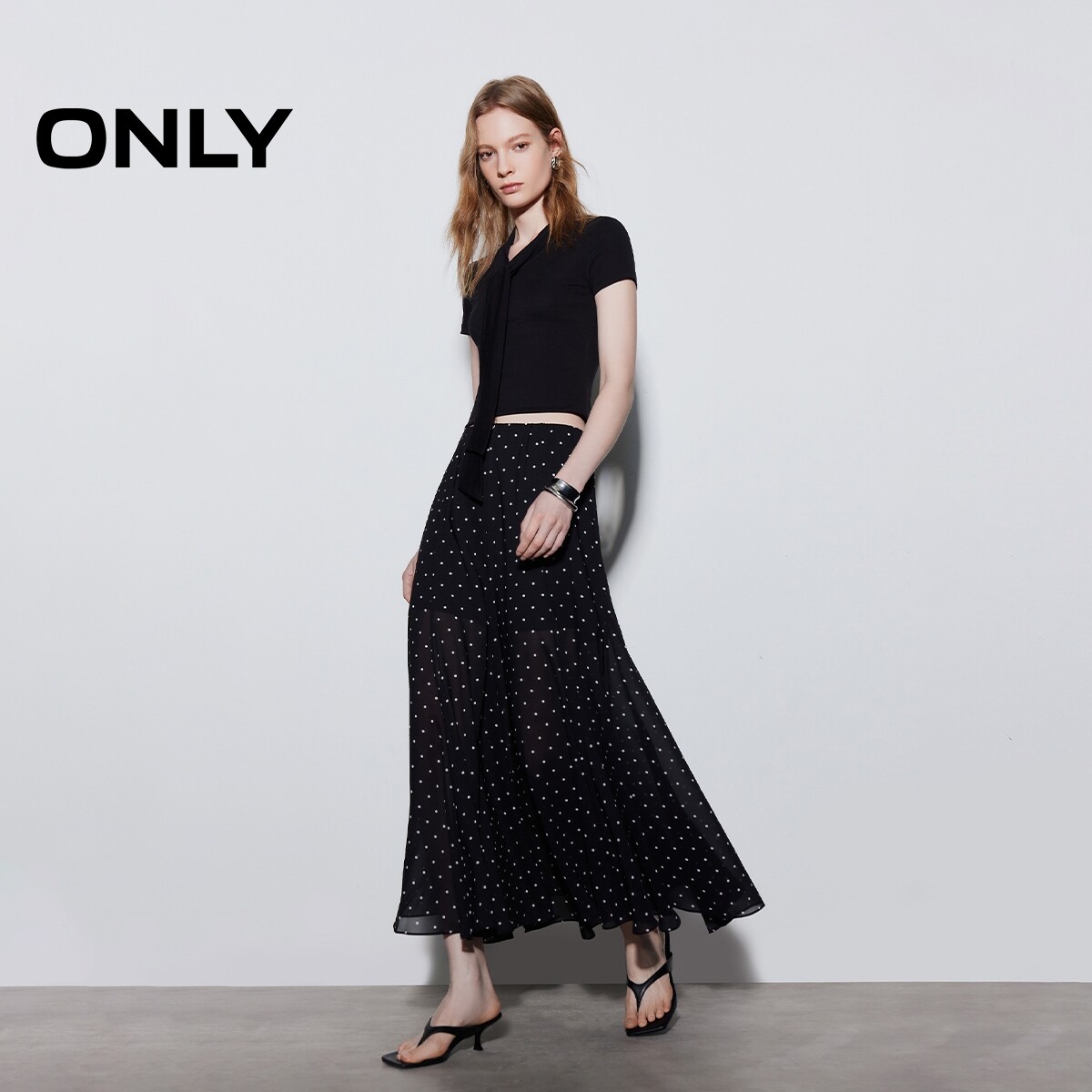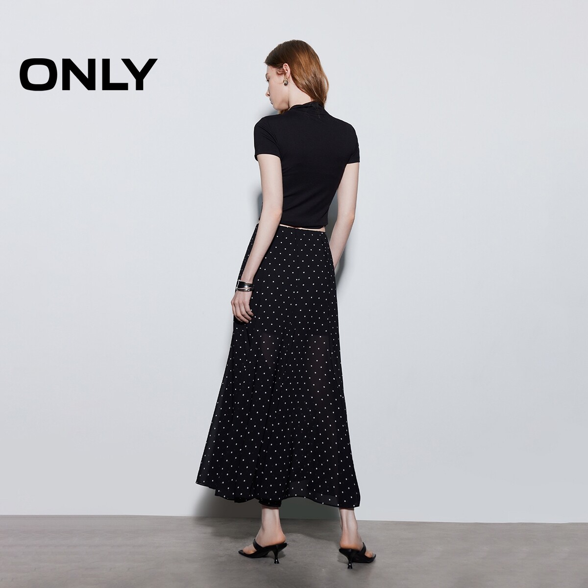 优雅雪纺质感鱼尾裙长裙半身裙女 复古波点法式 ONLY2026春季 新款