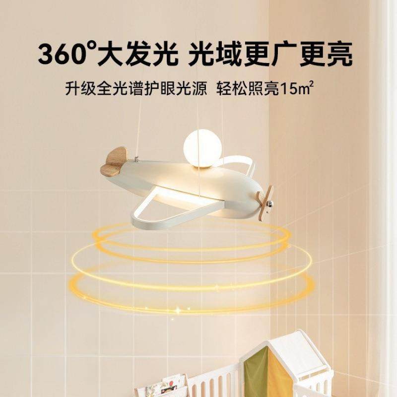 奶油风儿童意房灯通创飞机灯CBU卡简约现代女孩男孩卧室吊灯225新