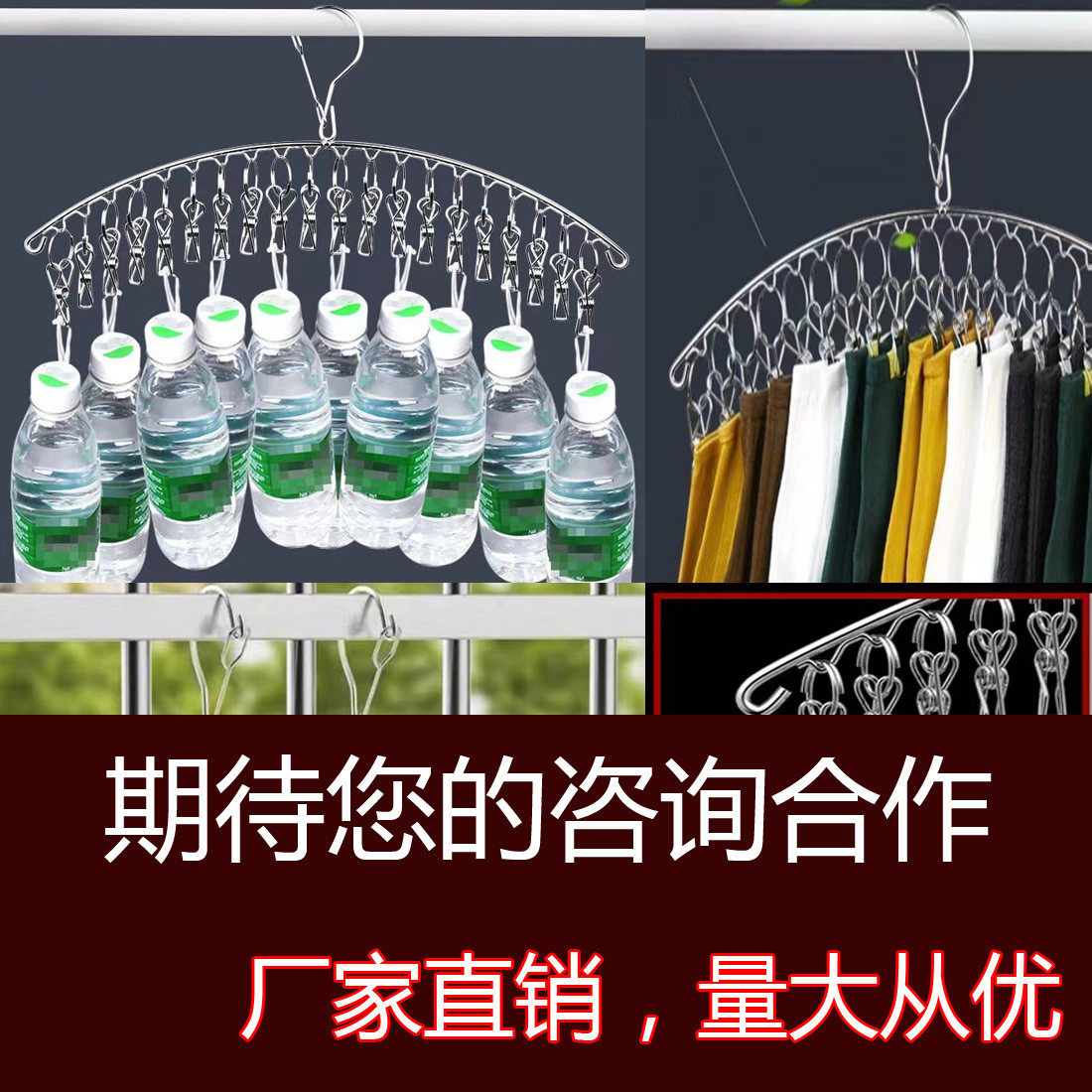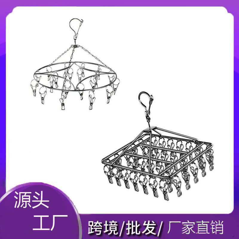 不锈钢晾衣架实心衣架多夹防风袜架阳台晒袜架晒衣服架多功能挂钩