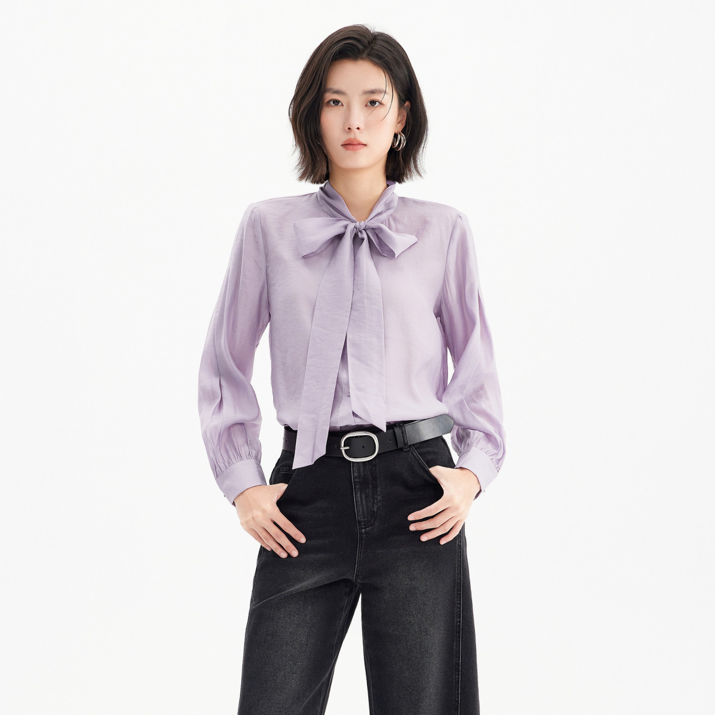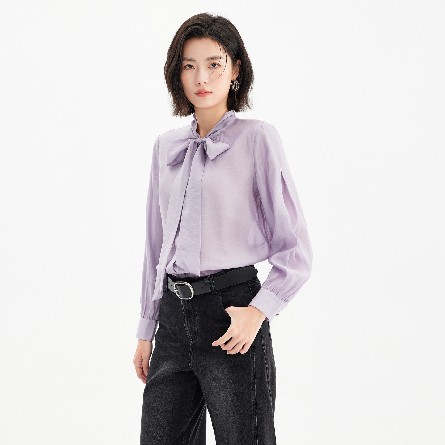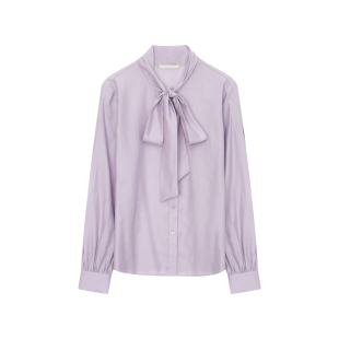 莫代尔长袖 新款 气质通勤职业衬衣 26年春季 飘蕾职场OL紫色飘带衬衫