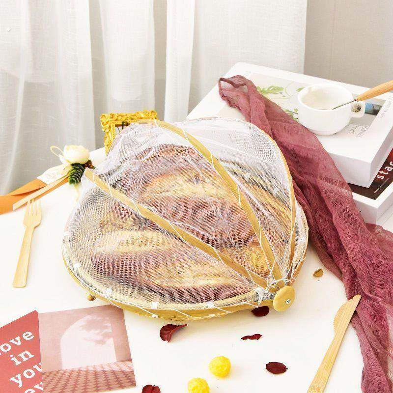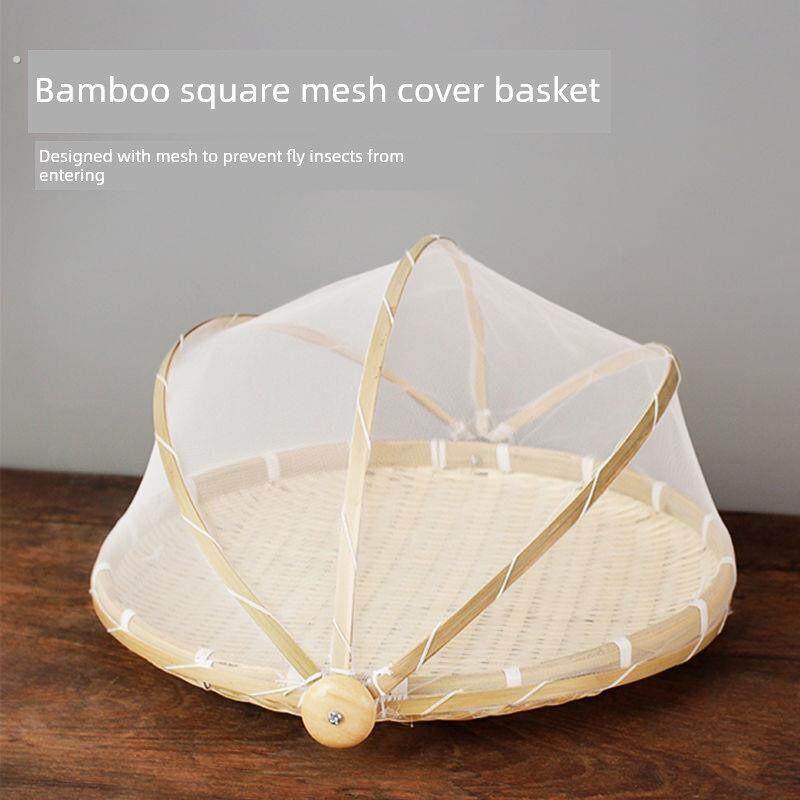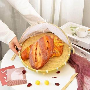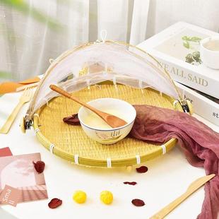 家用竹编制品带网罩防蝇竹篮馒头筐水果篮收纳筐簸箕有盖晾晒托盘