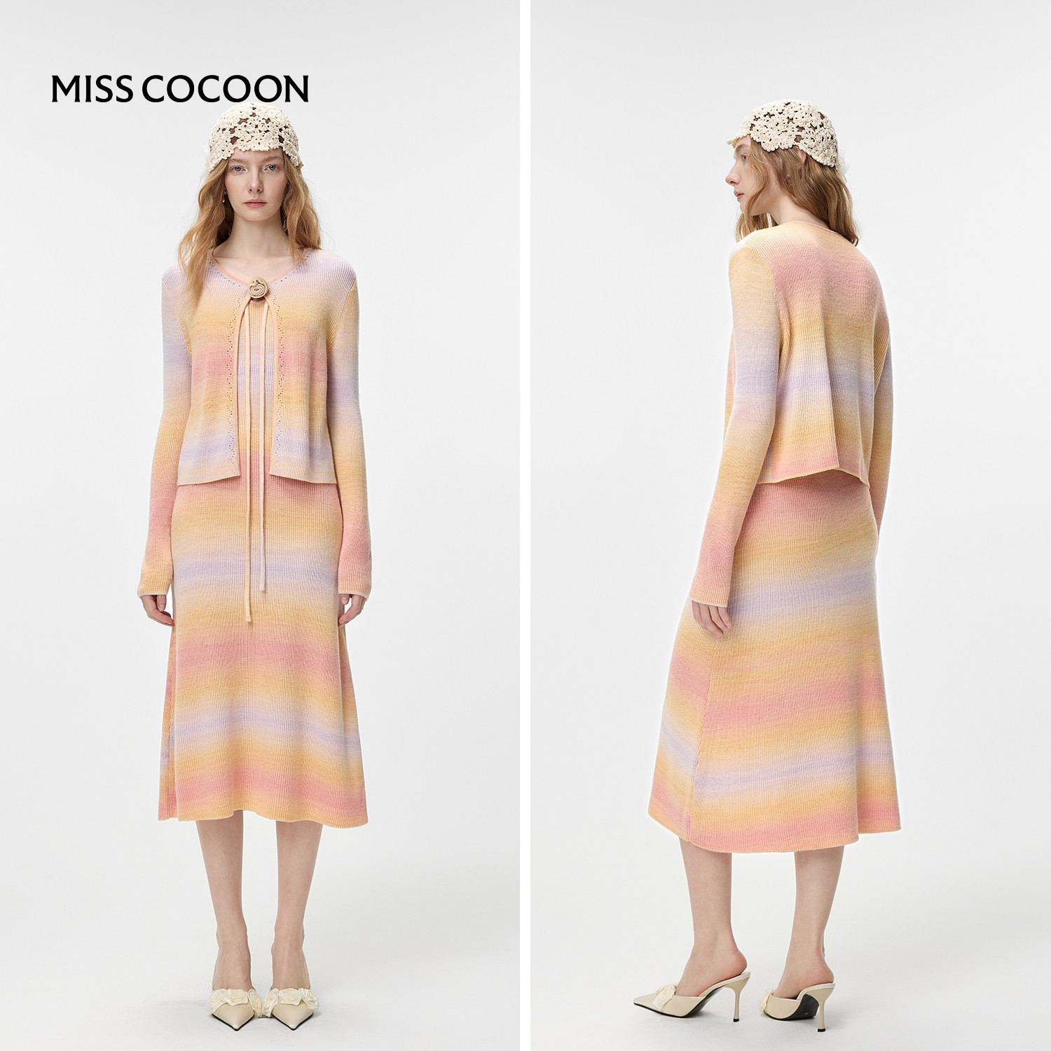 渐变色绵羊毛套装 新款 外套女2026春季 MISSCOCOON可可尼针织开衫